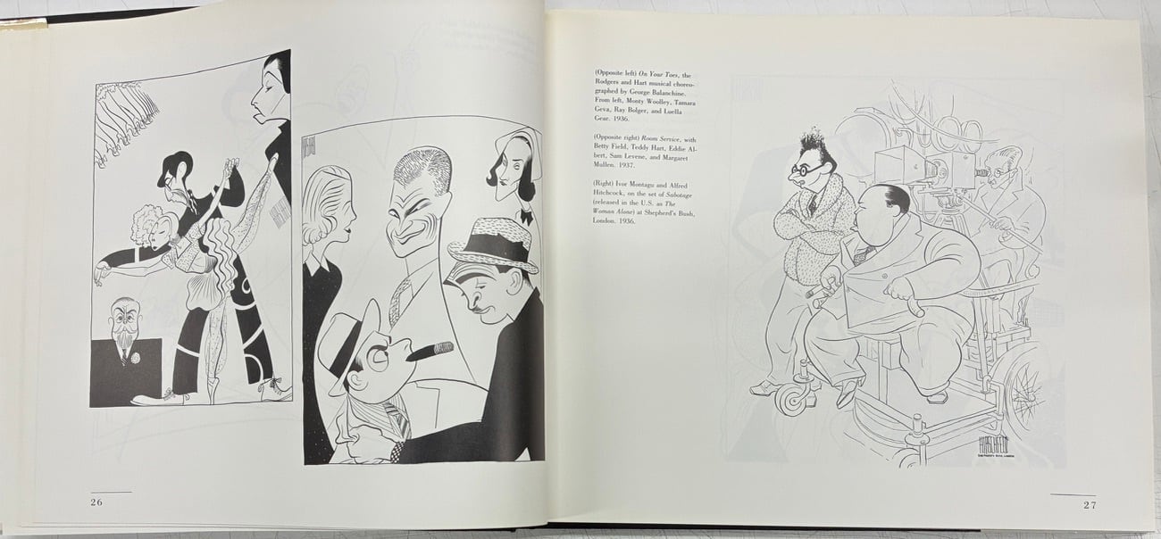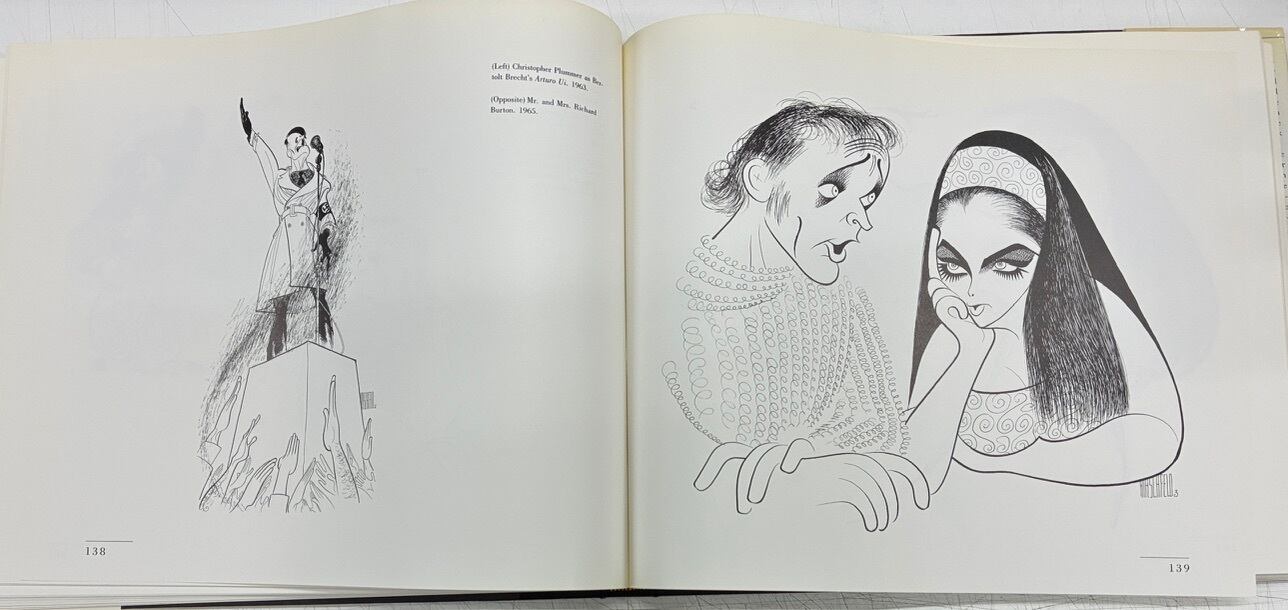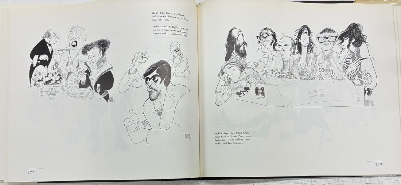 ハーシュフェルドは、ニューヨーク タイムズに75年ちかく掲載された似顔絵画家 辛辣な感じがおおい 巨匠です 31×26×3センチの大きな画集です カバー 1991年 Charles Scribner's Sons