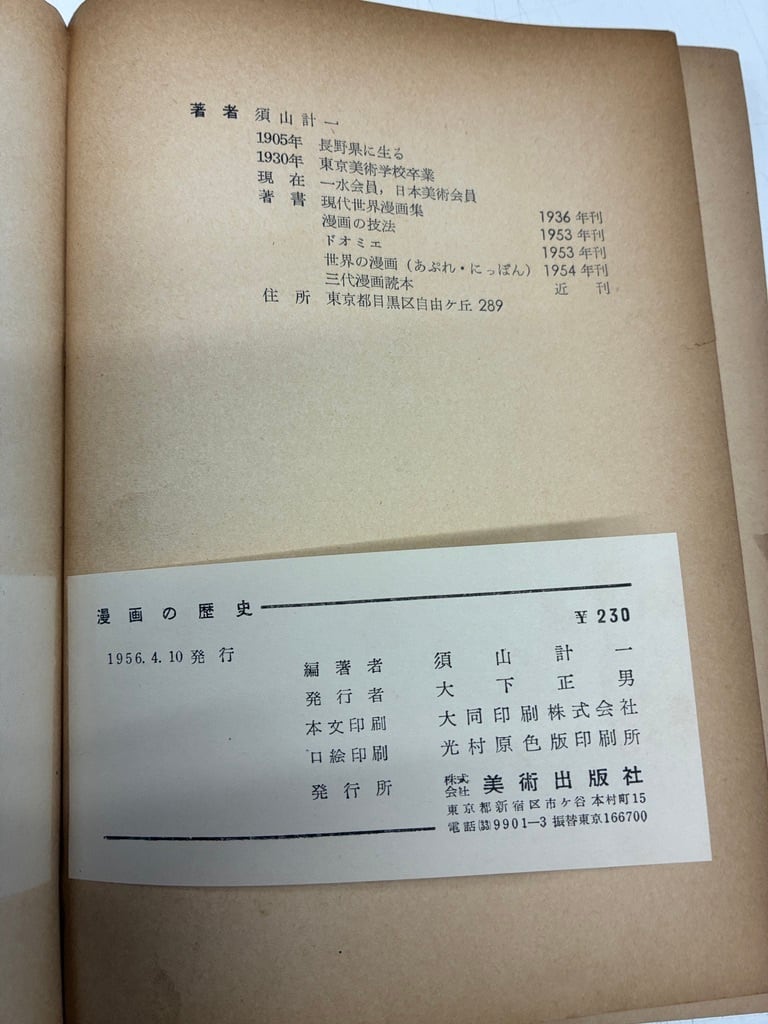 漫画の歴史 須山計一 1956年 初版 美術出版社