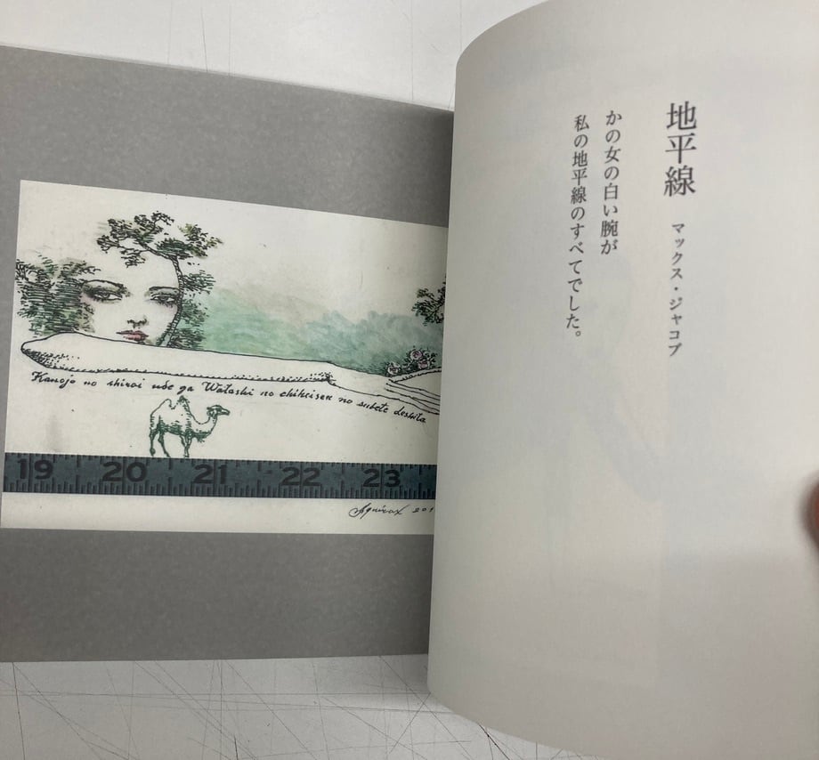 堀内大學訳の「月下の一群」から、宇野亜喜良さんが、詩の言葉を選び、そこから触発されてイラストレーションを描く。全くもって宇野亜喜良から発せられた企画をそのままに本にした。2010年 当時の定価は1500円 限定1000部 トムズボックス
