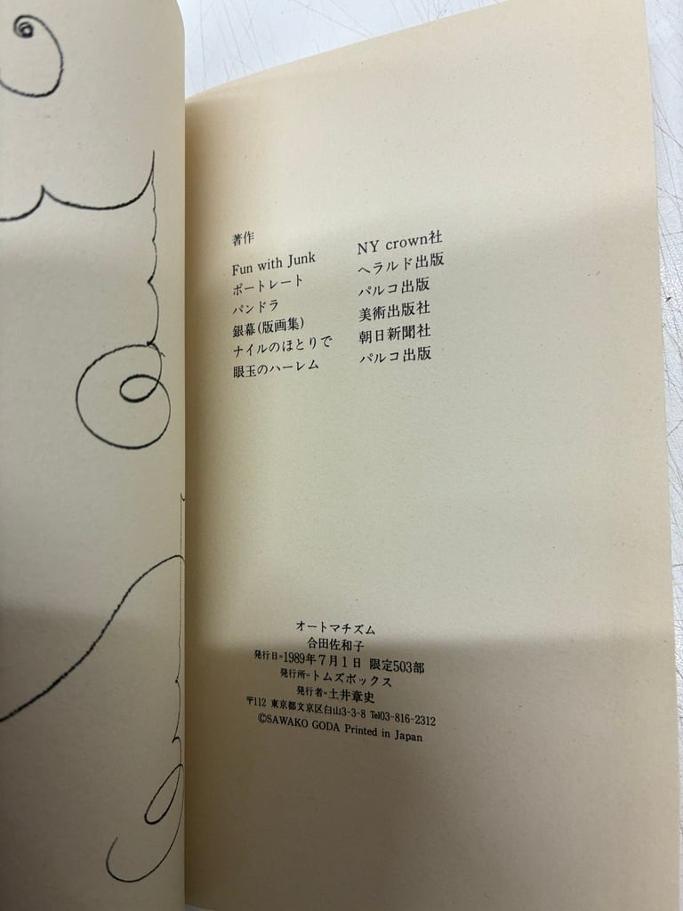 合田佐和子 オートマチズム 1989年 限定503部 トムズボックス