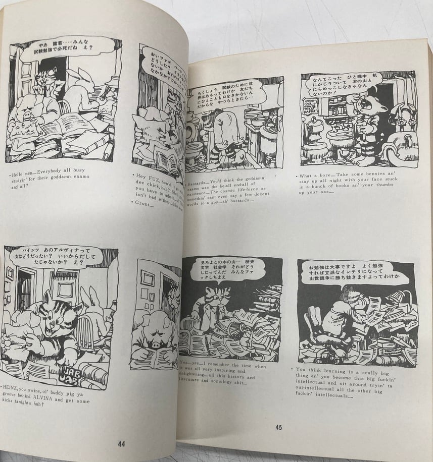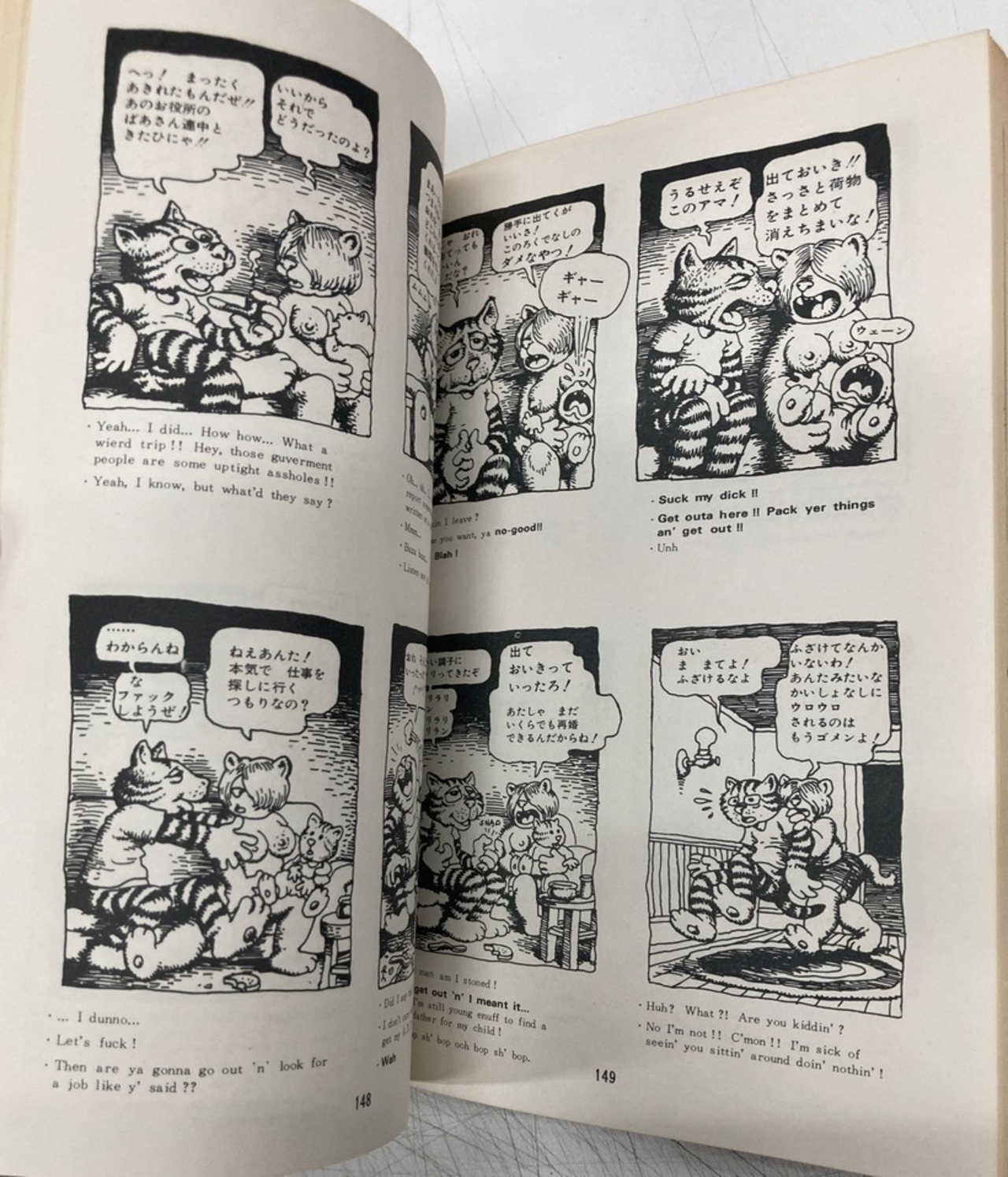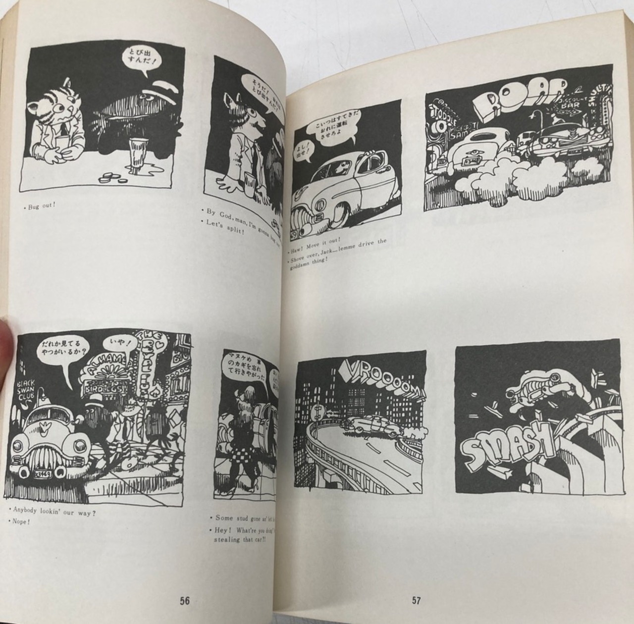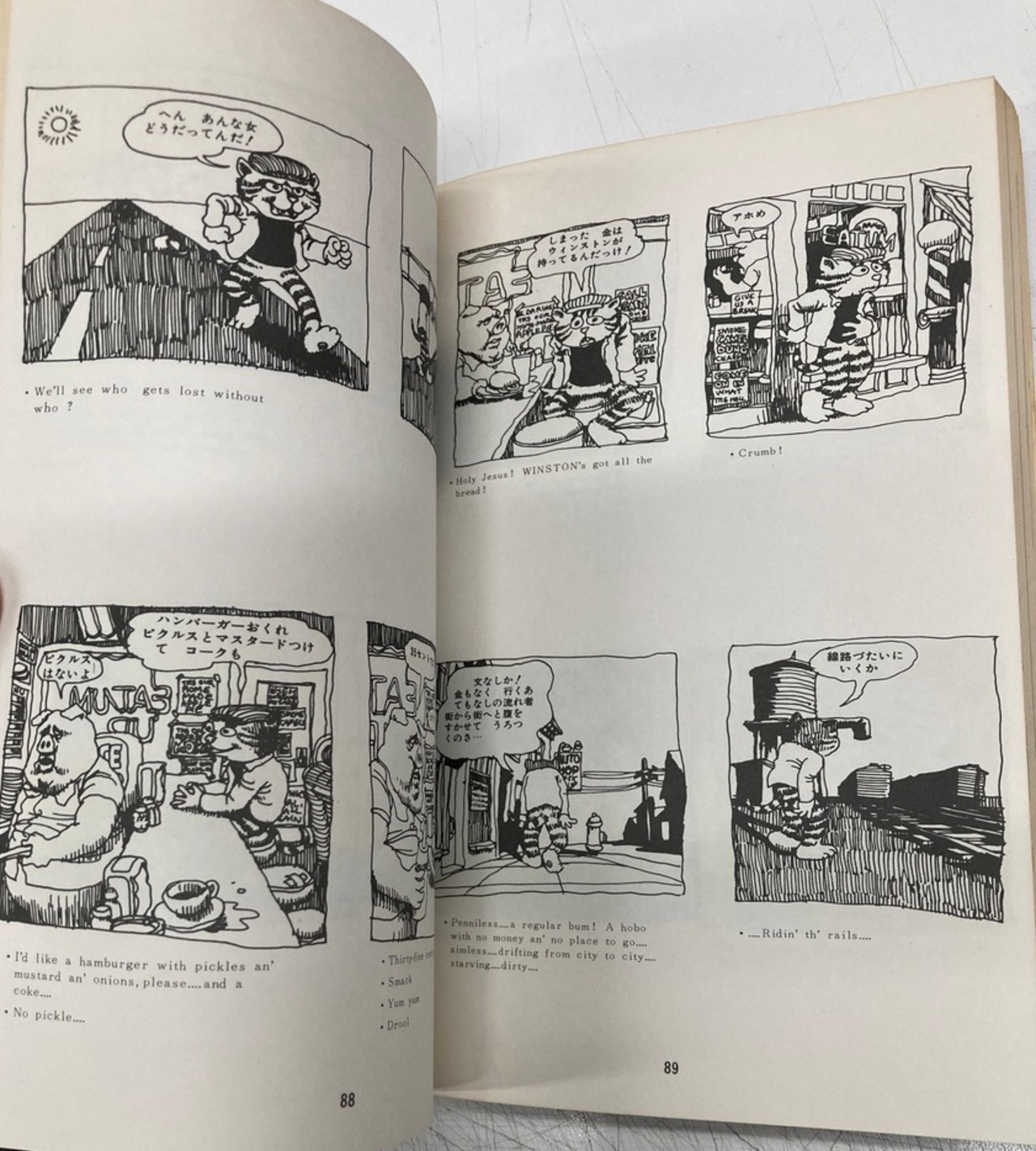 1977年にクラムの本がでていたなんて!それも小野耕世の訳、植草甚一の解説 版元はすばる書房! 訳の日本語版と英語を併記するために、どうもデザインをしなおして1ページに二コマのページデザイン! 1977年 初版 すばる書房