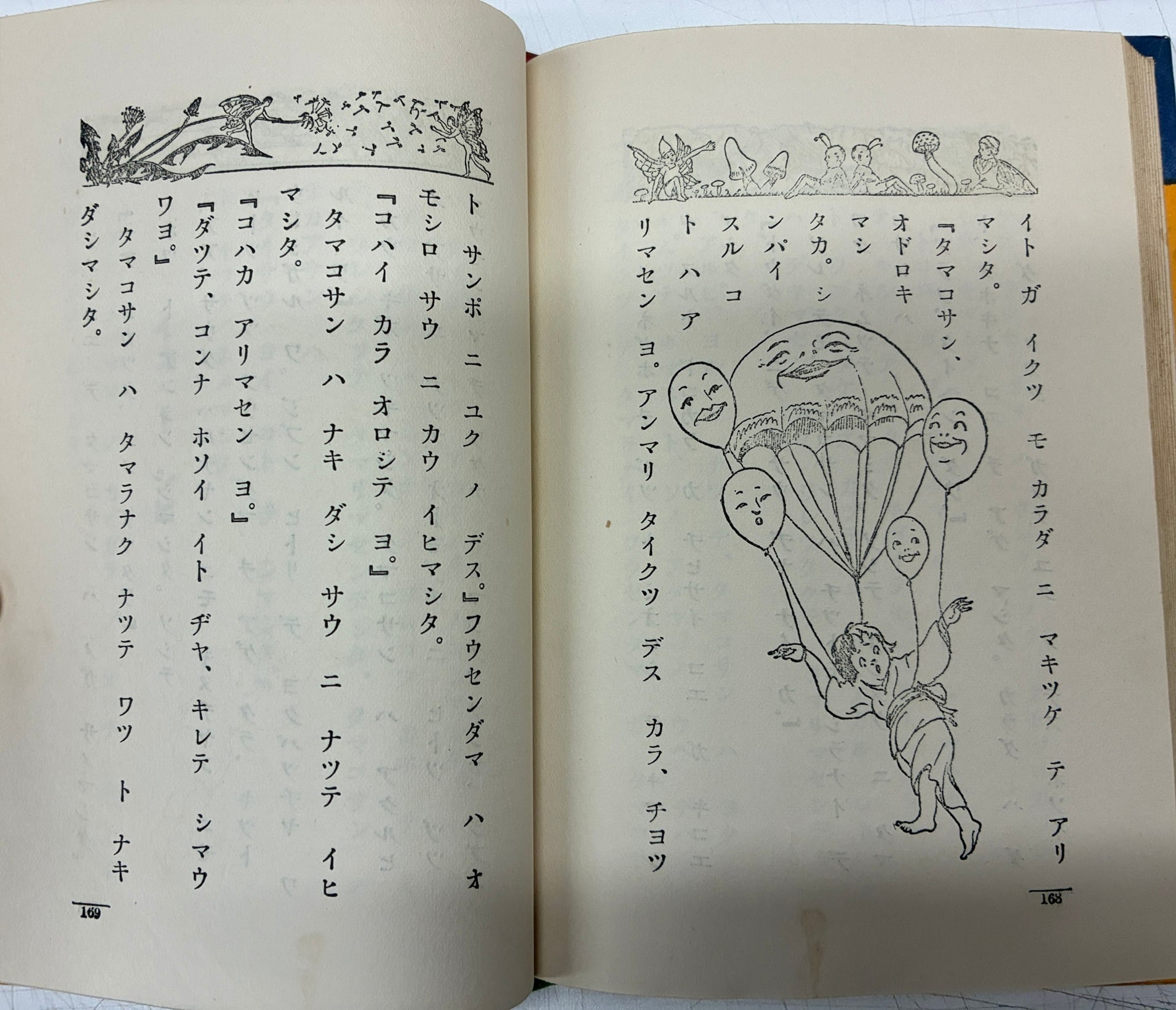 ミズタニジラウは、水谷次郎 この頃の子どもの本は、箱入りであったり、豪華なつくりのように見えて、やはり丸善や冨山房の本の作りの重量感がちがう、つまりおもしろいビジュアルであるけど装丁や挿絵の作家の名前がみあたらない カタカナの本文もおもしろい 面白イオ伽叢書1 ミズタニジラウ 大正15年7刷 盛義堂書店