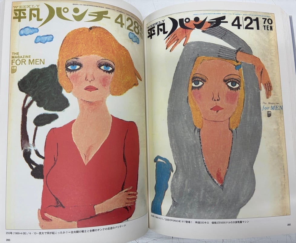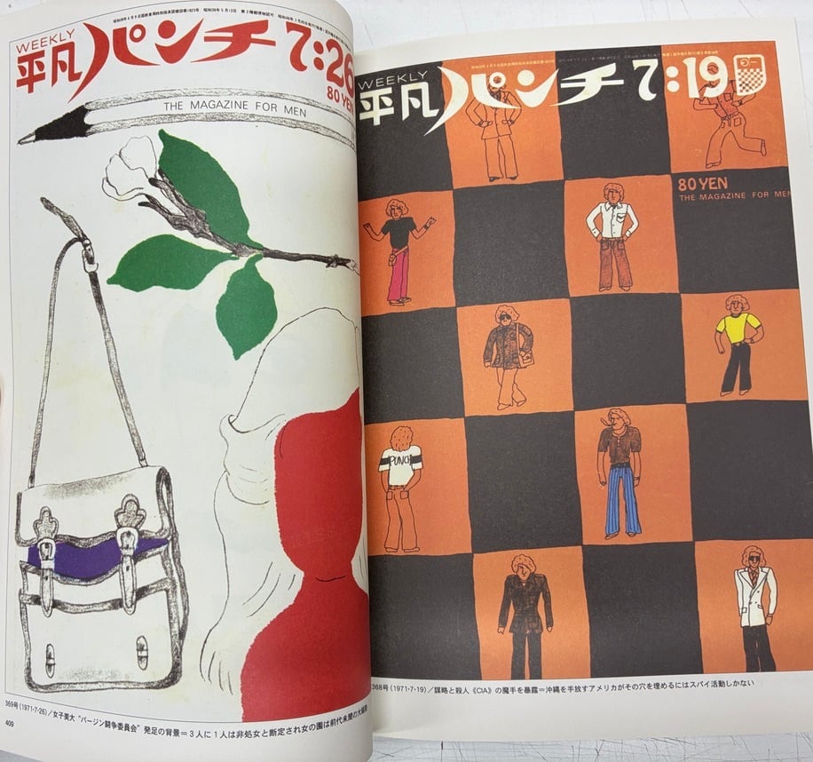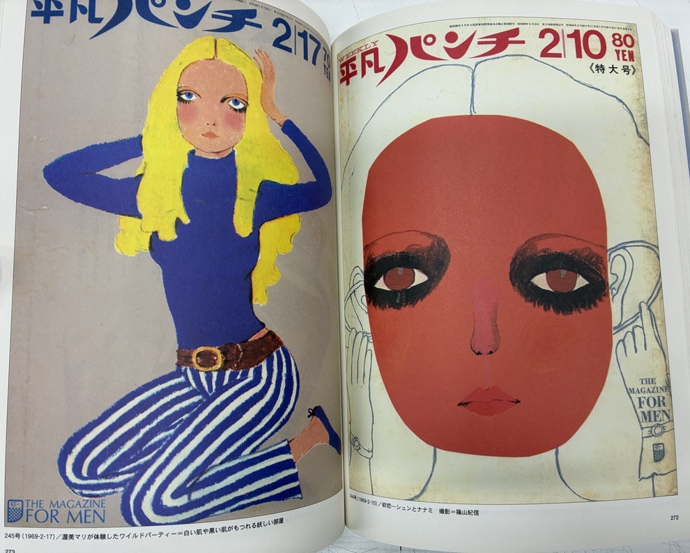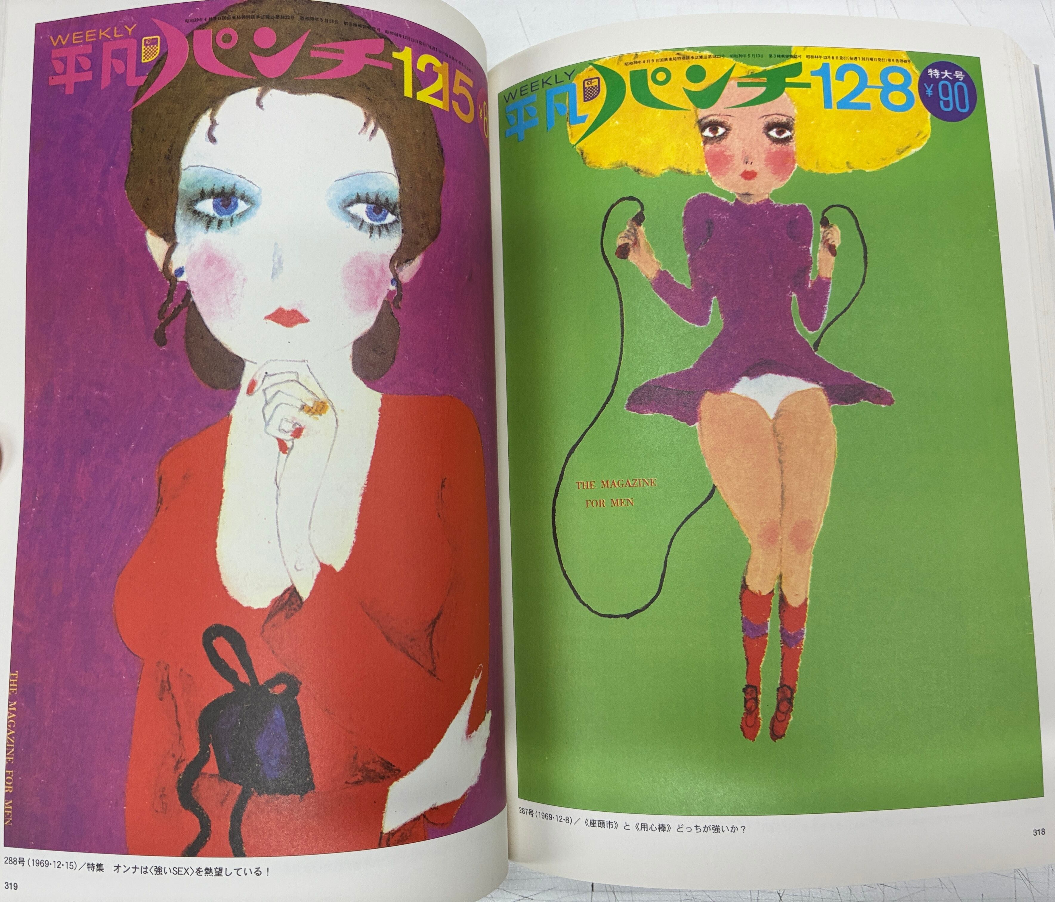 1964年5月11日号の創刊号から1971年12月27日号までの『WEEKLY平凡パンチ』390冊分の表紙『デラックスパンチ』『平凡パンチ増刊号』『平凡パンチ女性版』の表紙も含まれています 奥付けを見ておどろいた、てっきり「平凡パンチ」の版元マガジンハウスの発行かとおもっていたら、イオグラフィック、大橋歩の事務所ではないか!つまり私家版!まいりました! 3.5センチの分厚さ 2003年 大橋歩 イオグラフィック