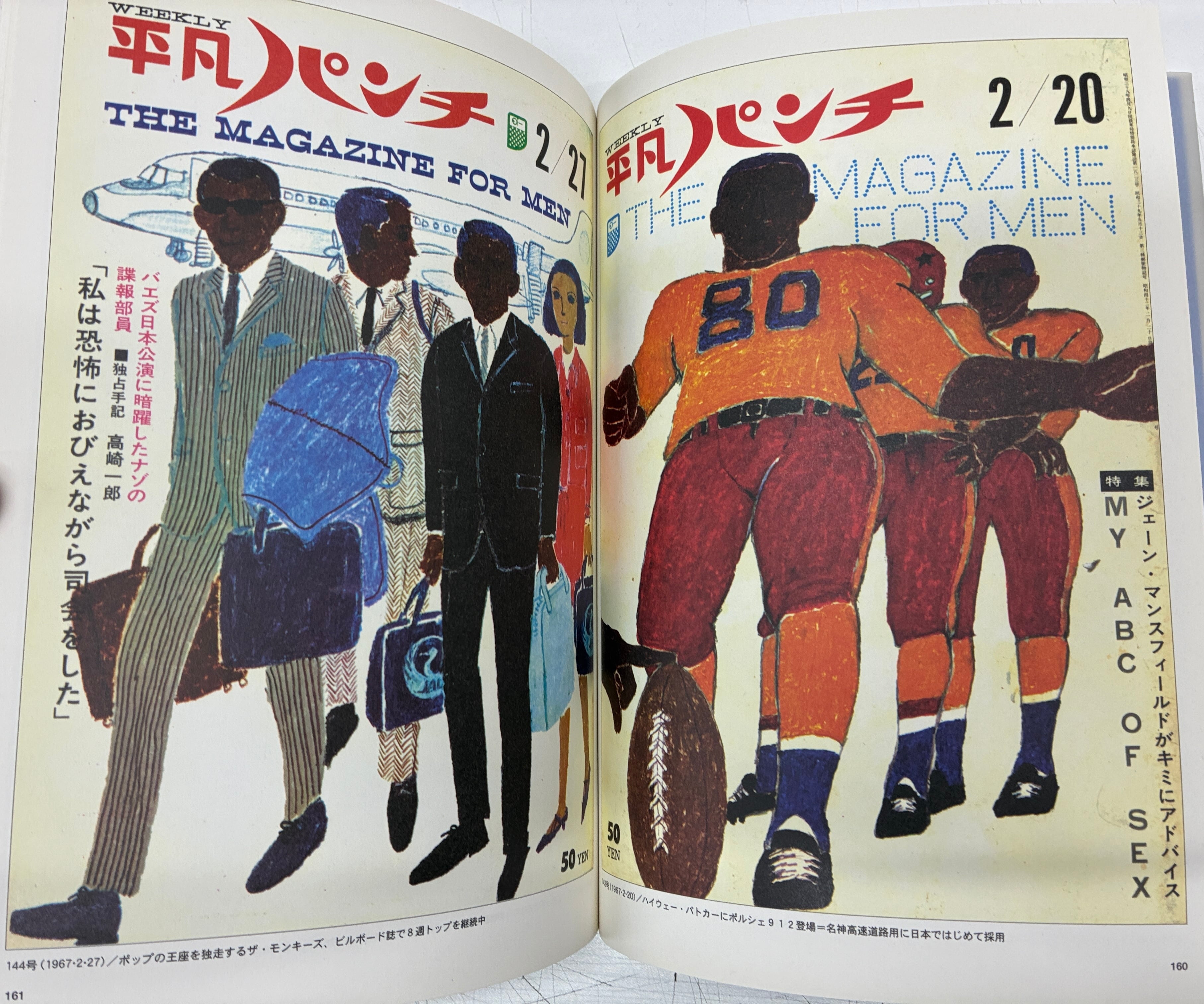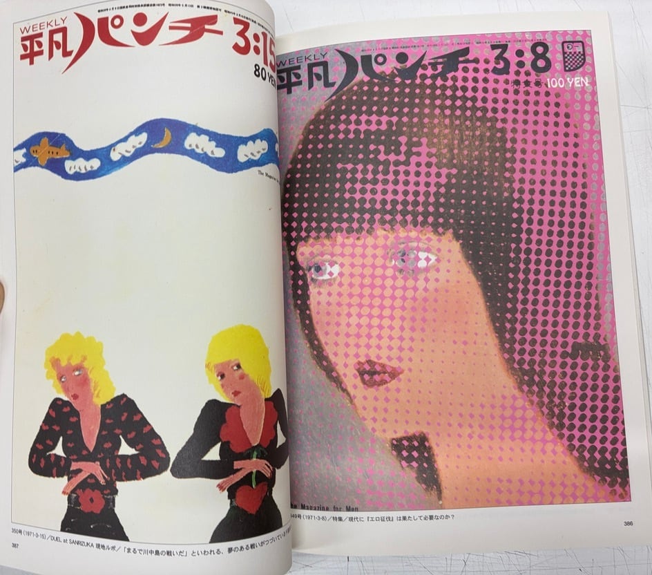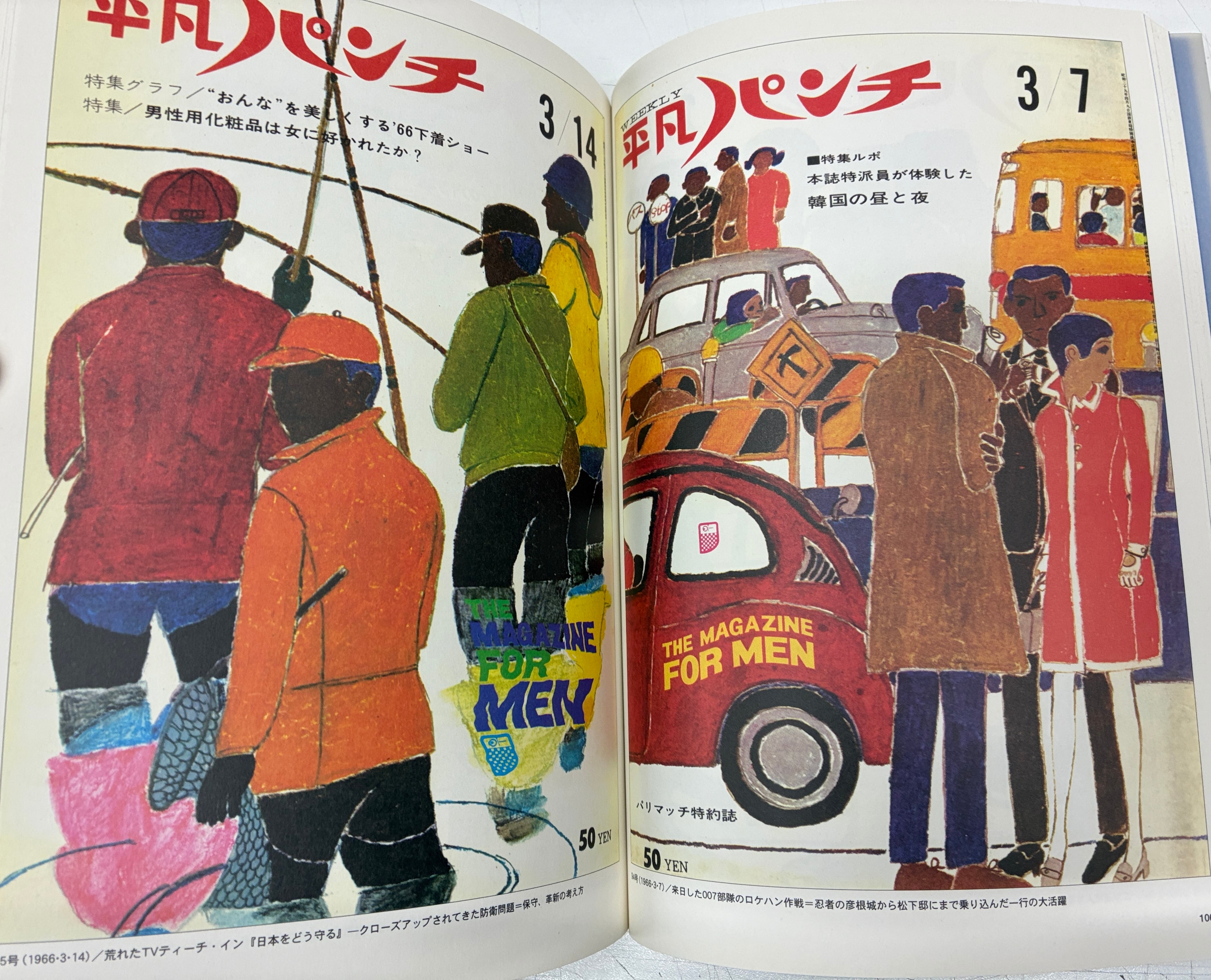 1964年5月11日号の創刊号から1971年12月27日号までの『WEEKLY平凡パンチ』390冊分の表紙『デラックスパンチ』『平凡パンチ増刊号』『平凡パンチ女性版』の表紙も含まれています 奥付けを見ておどろいた、てっきり「平凡パンチ」の版元マガジンハウスの発行かとおもっていたら、イオグラフィック、大橋歩の事務所ではないか!つまり私家版!まいりました! 3.5センチの分厚さ 2003年 大橋歩 イオグラフィック