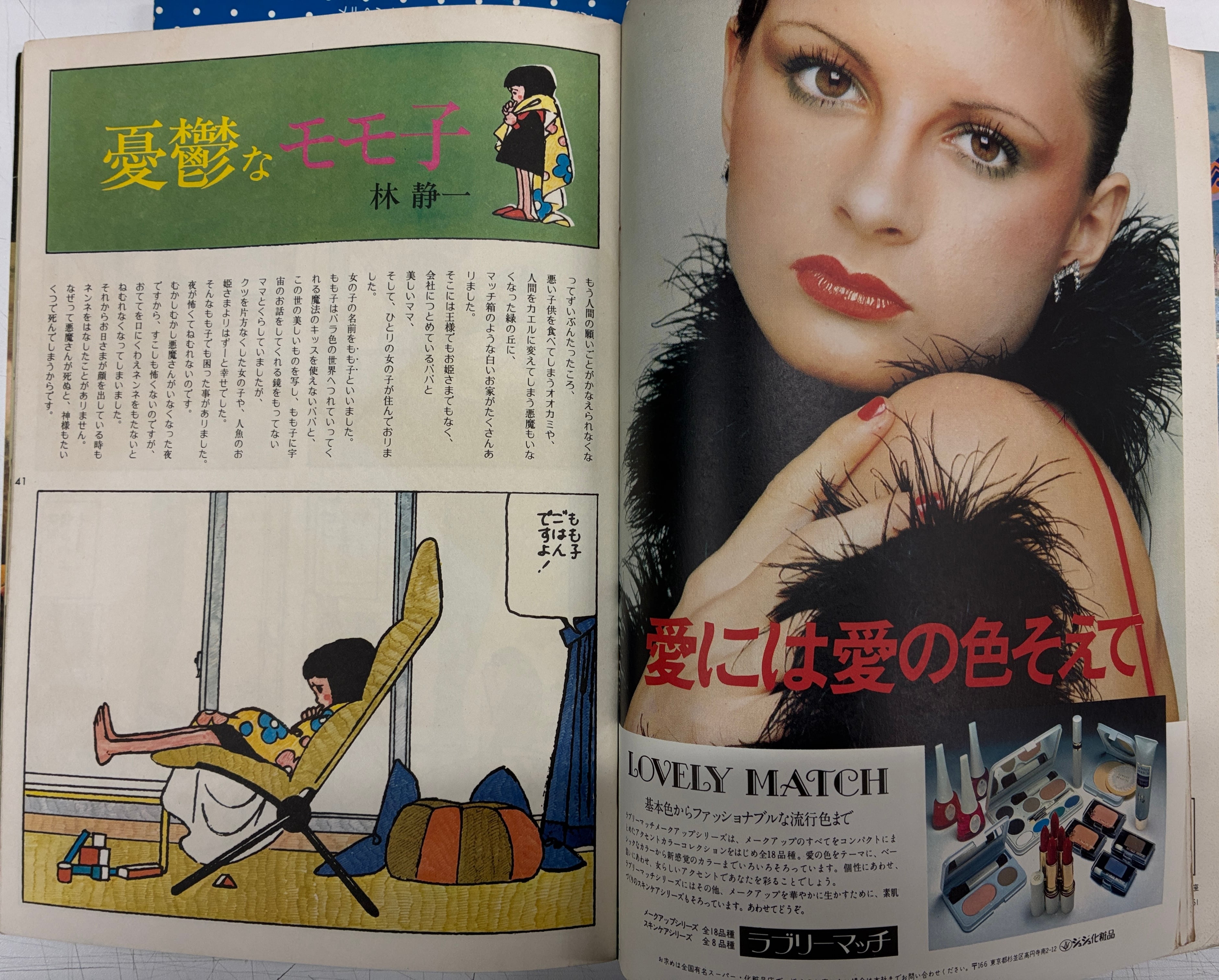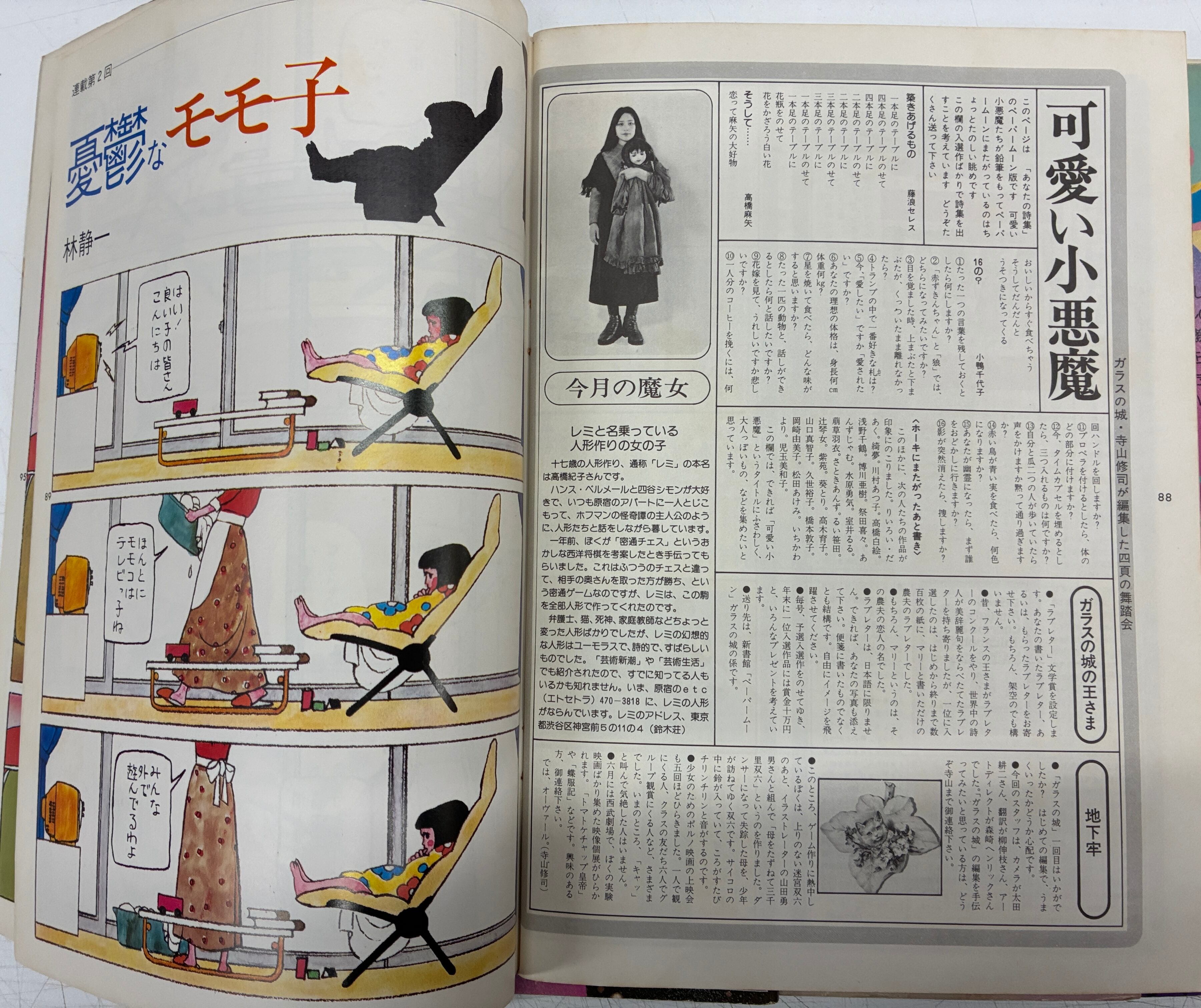 寺山修司 林静一 上野紀子 中井英夫 萩尾望都 宇野亜喜良など 先日「林静一漫画術」(セミ書房)を仕入れて読んでいたら、未収録の「憂鬱なもも子」が、この「ペーパームーン」に連載されていてびっくりした 1976-1977年 新書館