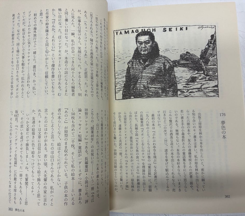 今江祥智の産経新聞に連載されたエッセイみな見開きなので、宇野亜喜良の挿絵の見開きごとに掲載されている 176見開きだから176の挿絵! 2002年 初版 函 原生林