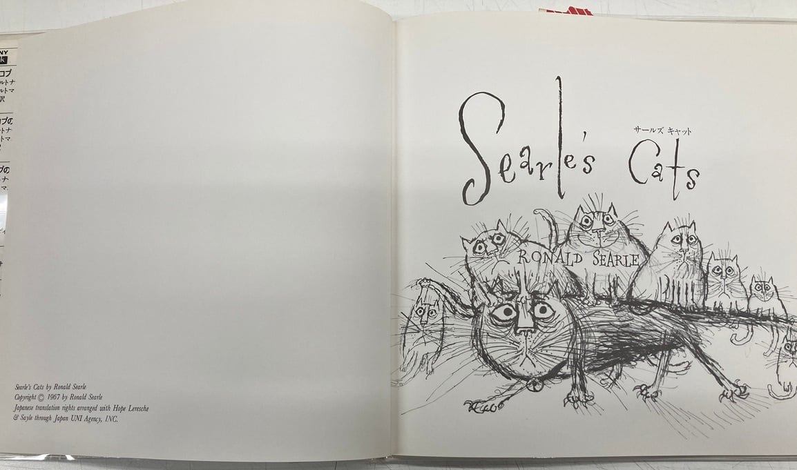 サールの猫の絵は有名だったようですね。漫画家ドナルド・サールの猫が、CBSソニー出版のartbackシリーズとして上梓されました 1978年このartbackシリーズは、絵本という表現手段は子どものだけのものじゃなく、大人にも通用するという試みでありました このシリーズには、あの長新太の「ちへいせんのみえるところ」があります 当時のビニールカバー付き 1978年 初版 企画・制作 CBSソニー 発行 エイプリル・ミュージック