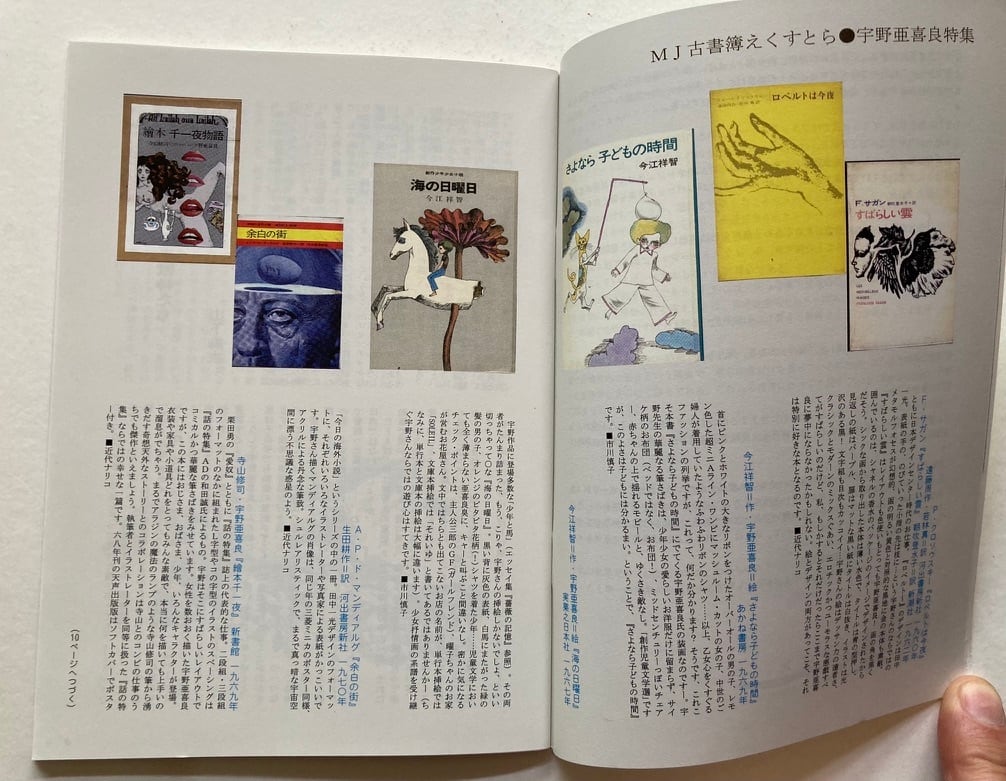 裏表紙に、モダンジュース別冊とあります 近代ナリコによる宇野亜喜良の長編インタビューあり 私、土井も、宇野亜喜良に関する文を寄せています 本文64ページ B6サイズ 近代ナリコ・編 2002年 揺葉社刊