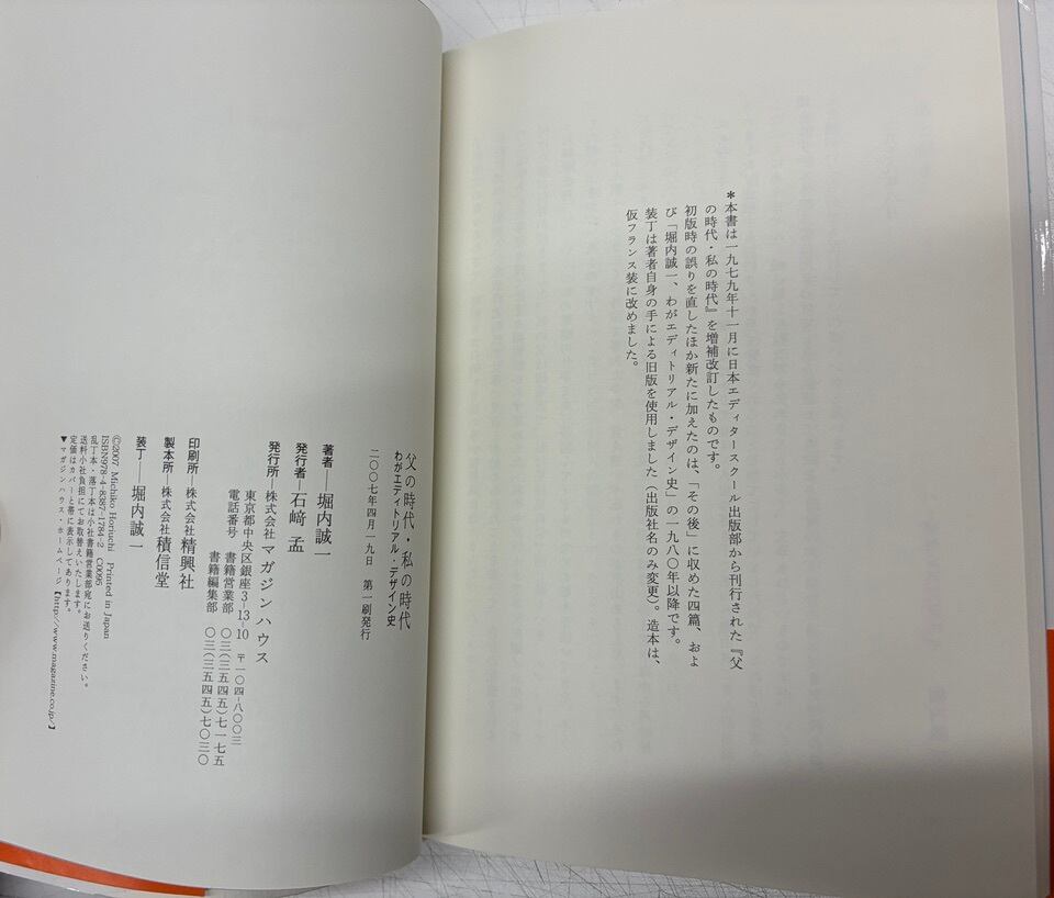 堀内誠一 父の時代・私の時代―わがエディトリアル・デザイン史 2007年 初版 帯 マガジンハウス