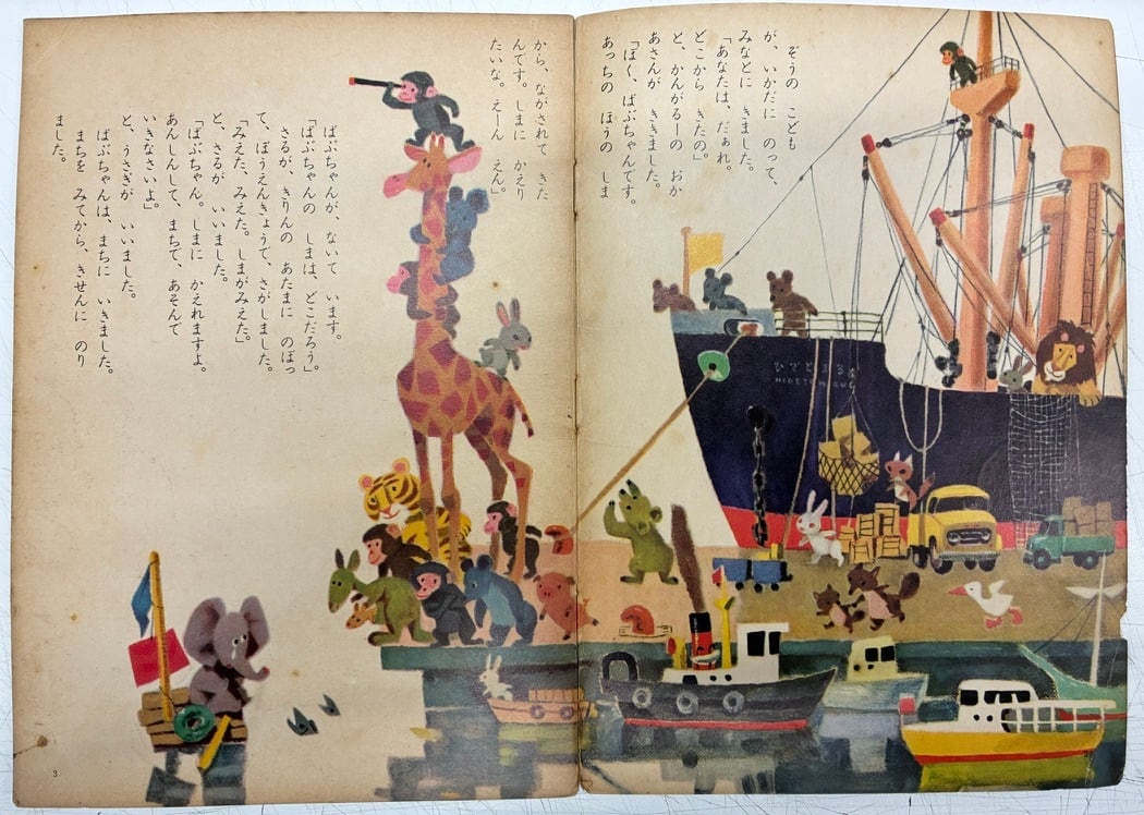 「どんくまさん」シリーズの柿本幸造の初期の仕事 といっても43歳の仕事 この翌年の1959年の小学館児童文化賞受賞 経年のヨレ感 月刊絵本よいこのくに 1958年 学研