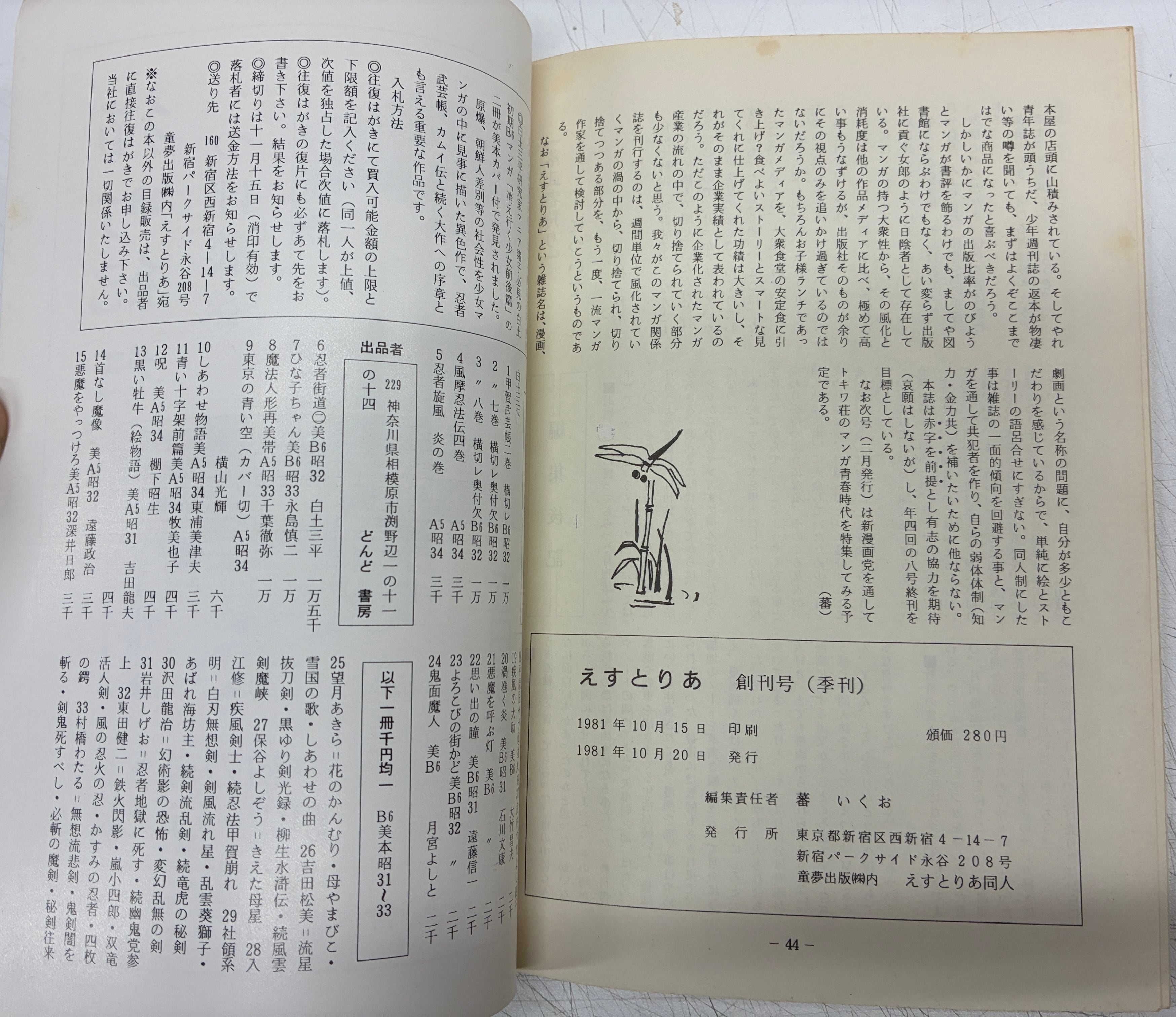 季刊 えすとりあ 創刊号 つげ義春 特集 1981年 エストリア同人