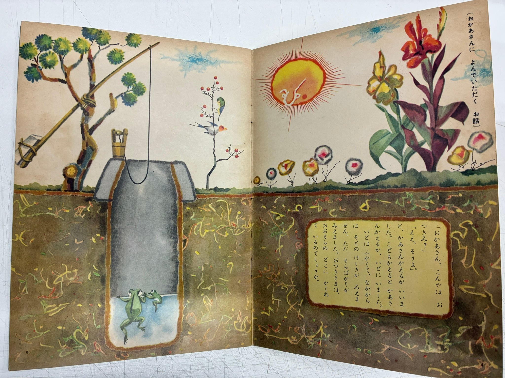 特集 おつきさまのはなし 全ページが武井武雄の絵というのは、めずらしい てっきり「よいこのくに」は、学研発行の月刊絵本だとおもっていたら、版元は、よいこのくに社になっている、ただ発行人は古岡秀人とあり、学研の創業者の名前でした 1957年 よいこのくに社