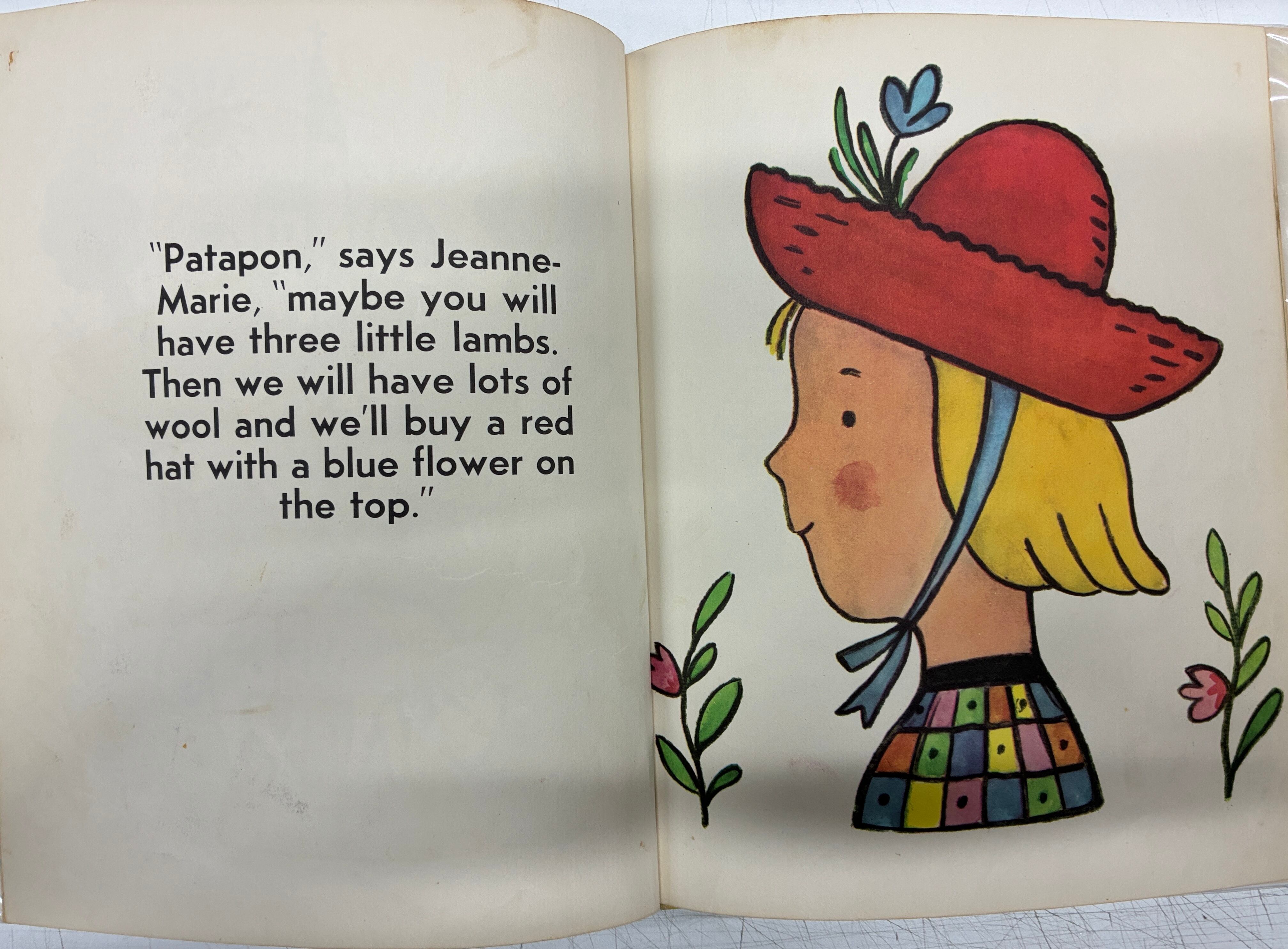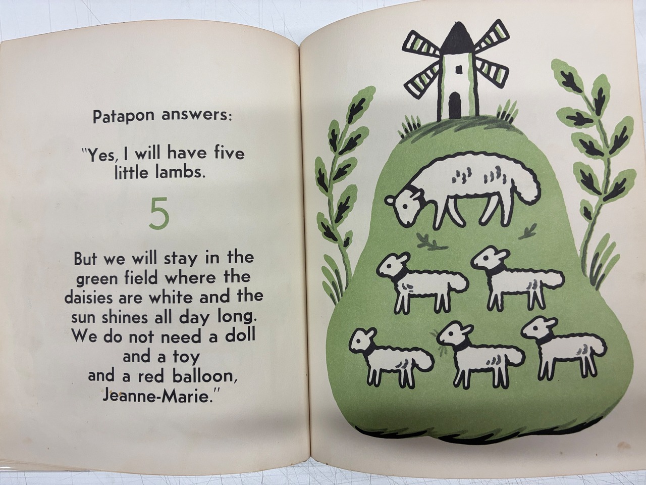 白いひつじのパタポンは、英語でPataponって入ってます 英語もそうだけど日本語でも、いい響きですね 岩波書店から『まりーちゃんとひつじ』のタイトルで出版 アメリカの図書館廃棄本 図書館印など 1951年 SCRIBNERS