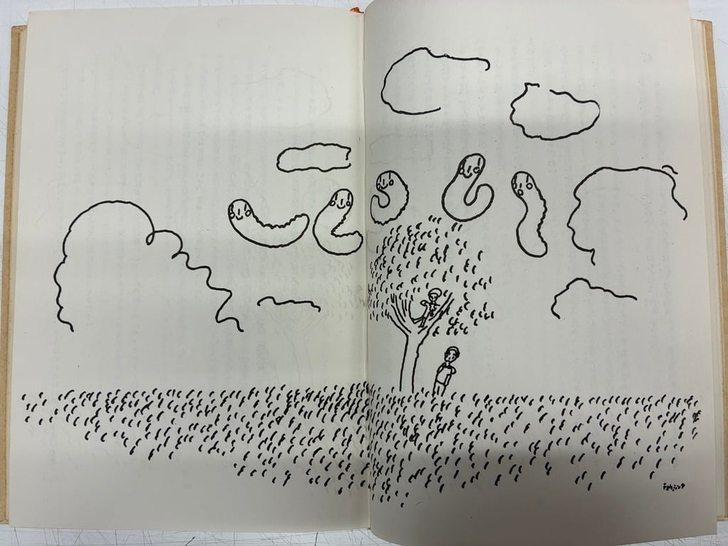 名作ですね 作者庄野英二のさらさら描いた絵がいい その中に長新太の絵が見開きで現れる たまりません 元版は大判の本で、小ぶりな愛蔵版になります 経年のスレ・ヨレ感 理論社の愛蔵版 1967年 初版 理論社