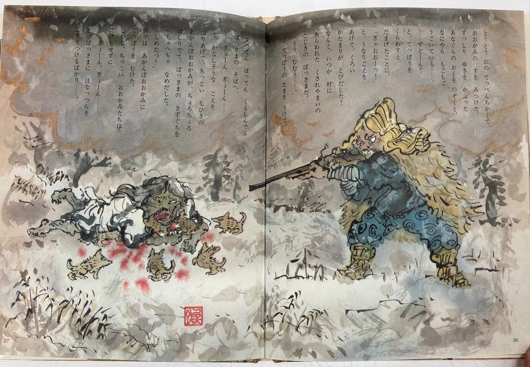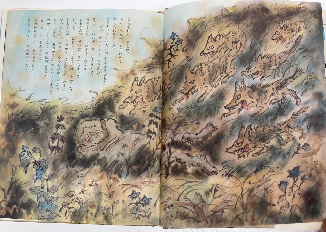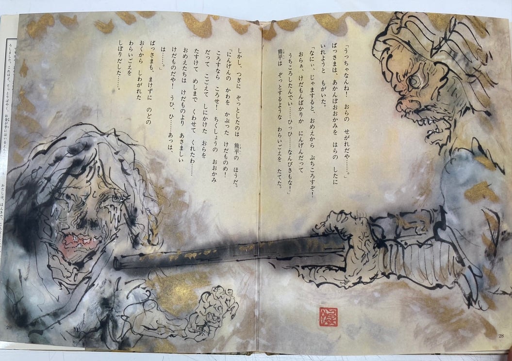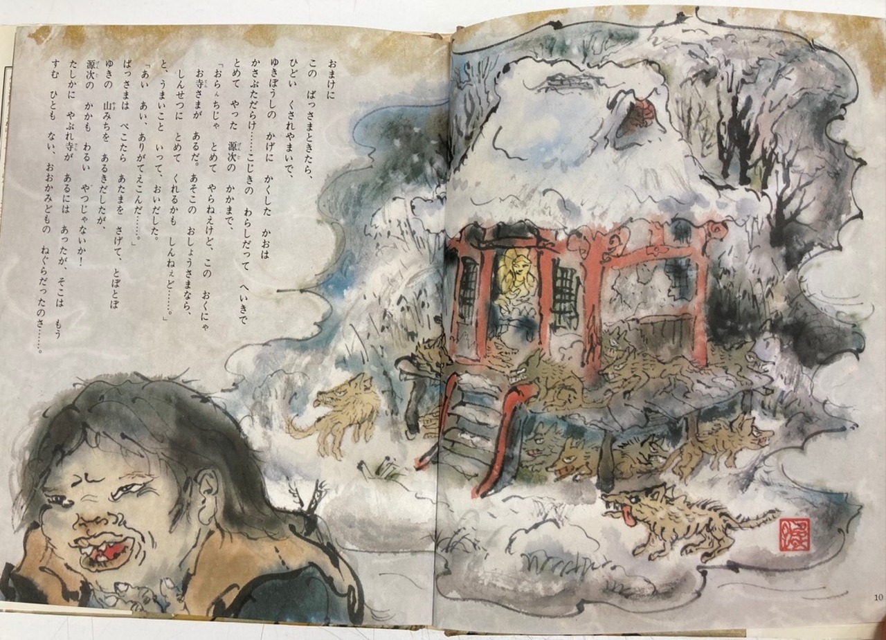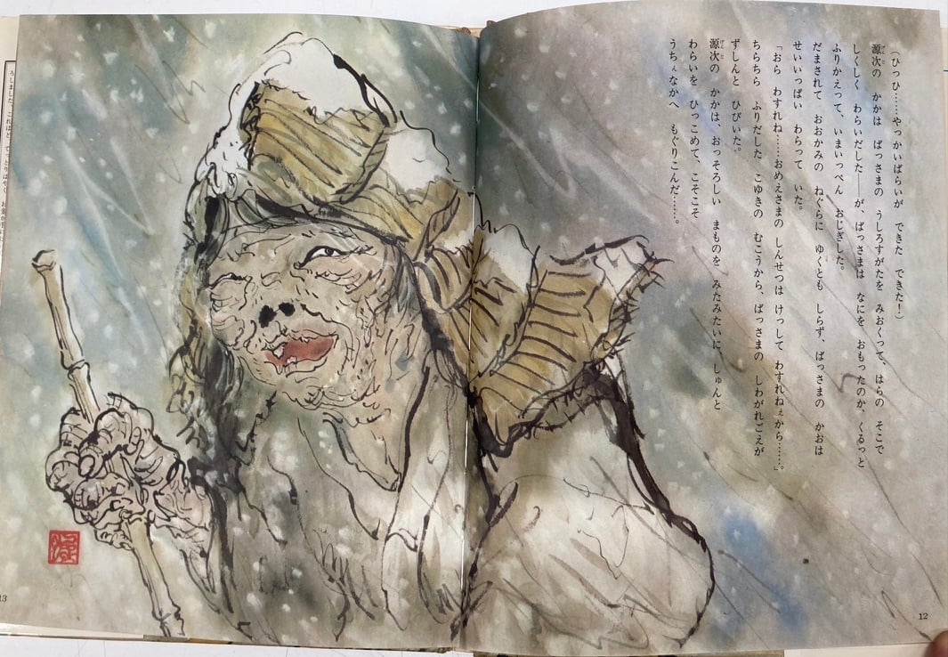 井上洋介から聞いた話ですが、この絵本は、発売当時、部落解放同盟からクレームがつき、回収されたようです ゆえにとても珍しい絵本になります 井上洋介ならではの壮絶でオドロオドロした絵は、たまりません 初版 カバー 昭和48年 ポプラ社