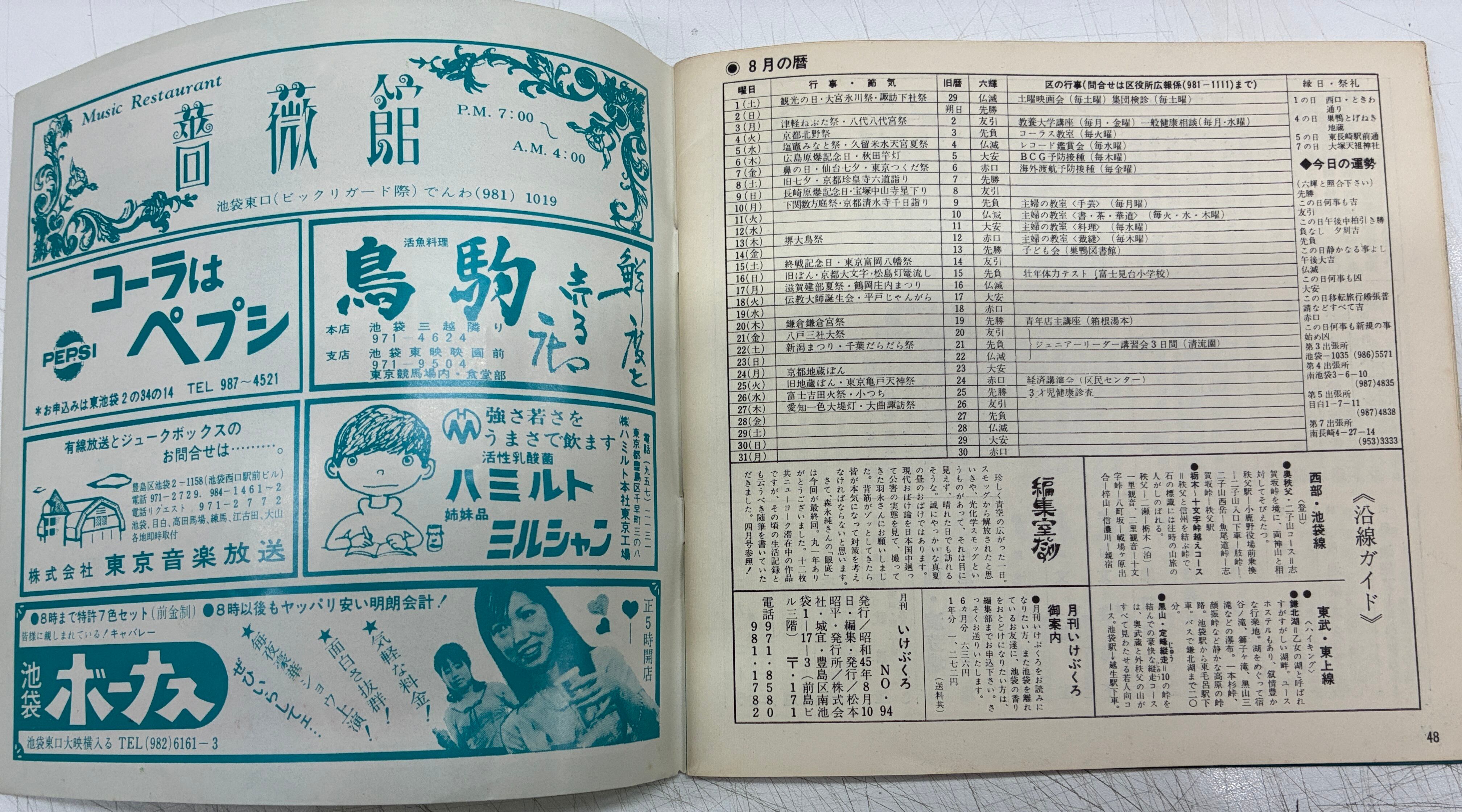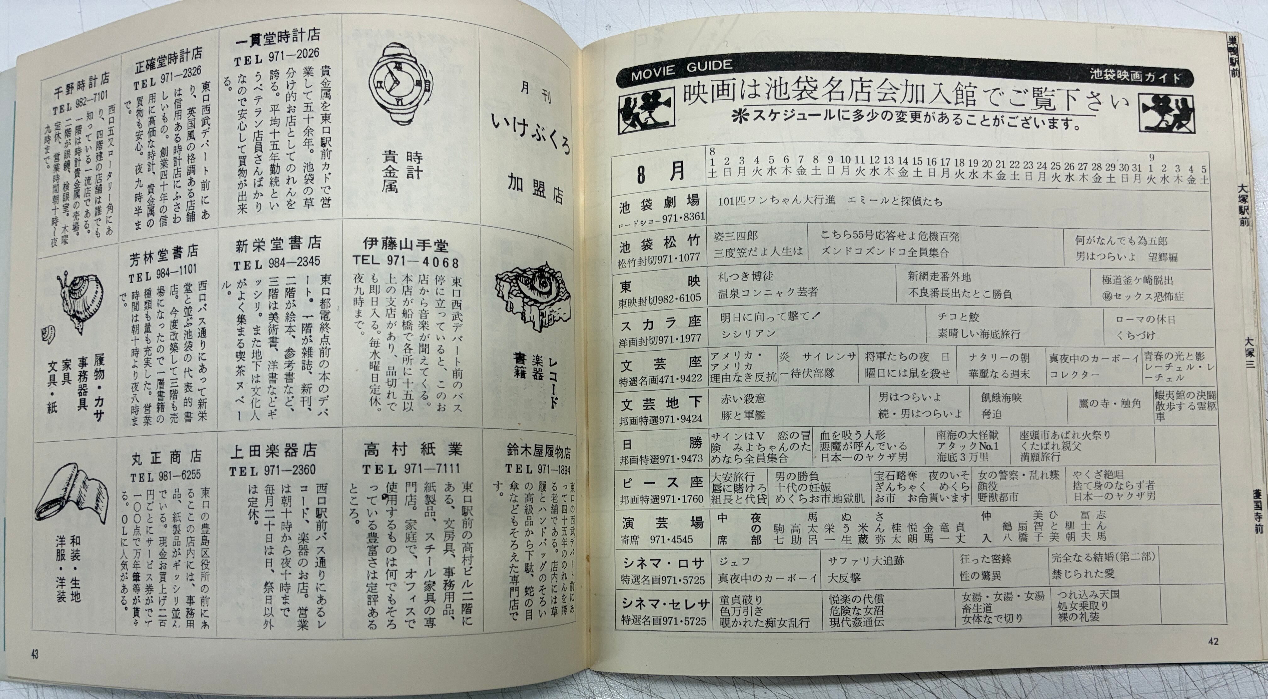 「銀座百店」「新宿プレイマップ」などタウン誌の池袋版! 「銀座百店」今でも健在 なんと宇野亜喜良の表紙 本文は「私にとって劇画とは」というタイトルで石子順造、辰巳ヨシヒロ、林静一の座談!など 表紙 宇野亜喜良 1970年 池袋名店会