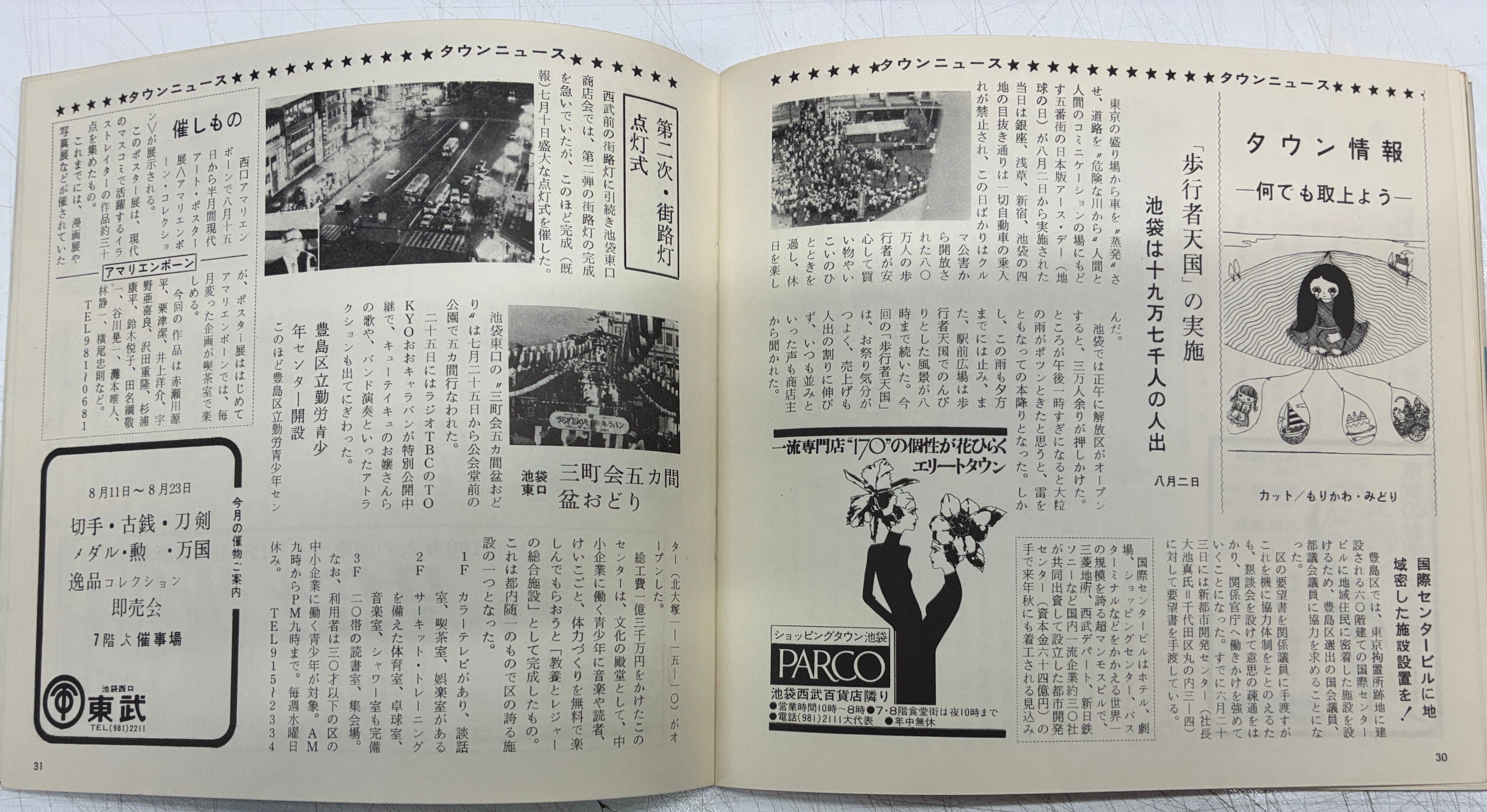 タウン誌 いけぶくろ7巻94号 表紙 宇野亜喜良 1970年 池袋名店会