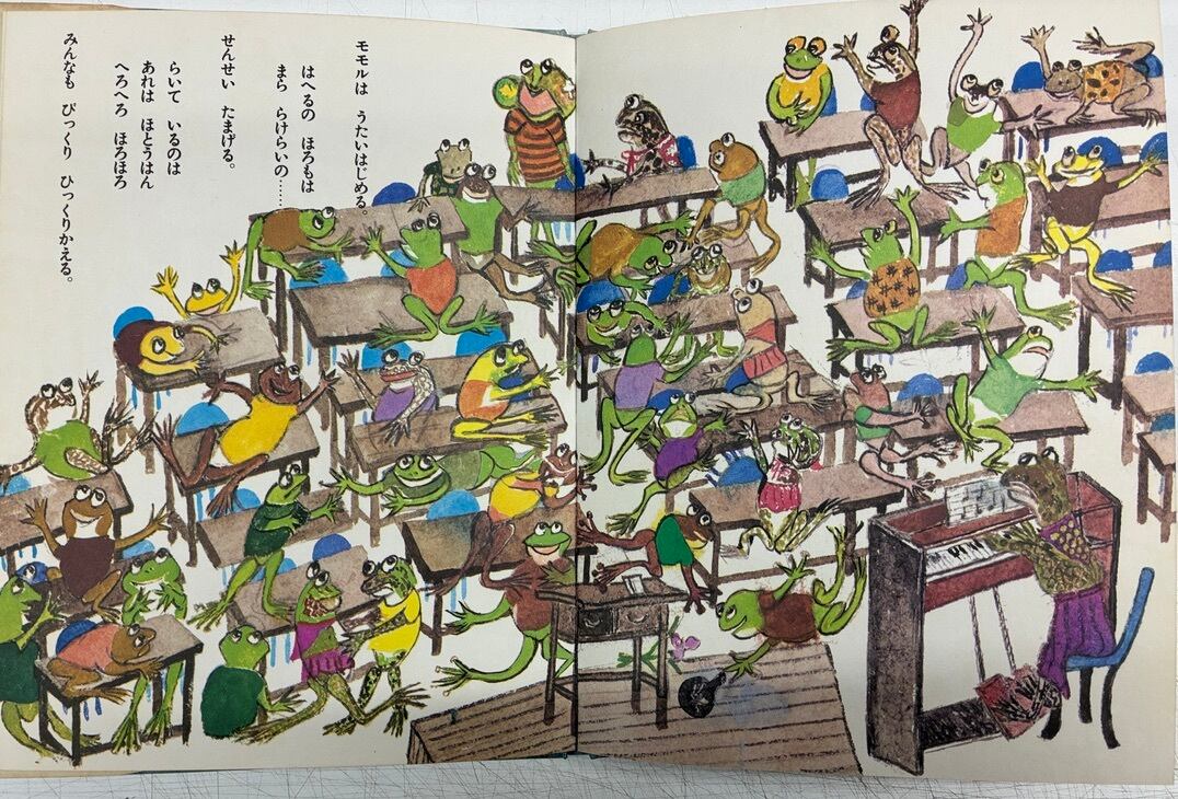 長新太、片山健が愛した大道あや 丸木スマが母で丸木位里が兄 そして60歳から絵筆をとった大道あや 調べるとほとんどの絵本は絶版状態で、現在買えるのはどうも「あたごの浦」だけ、みたいです この「かえるのモモル」シリーズは、やっぱり代表作になるようなきがします 1977年初版の1980年5刷 小峰書店