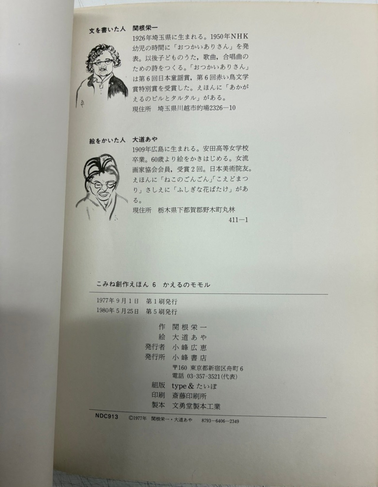 大道あや かえるのモモル 関根栄一 1977年初版の1980年5刷 小峰書店