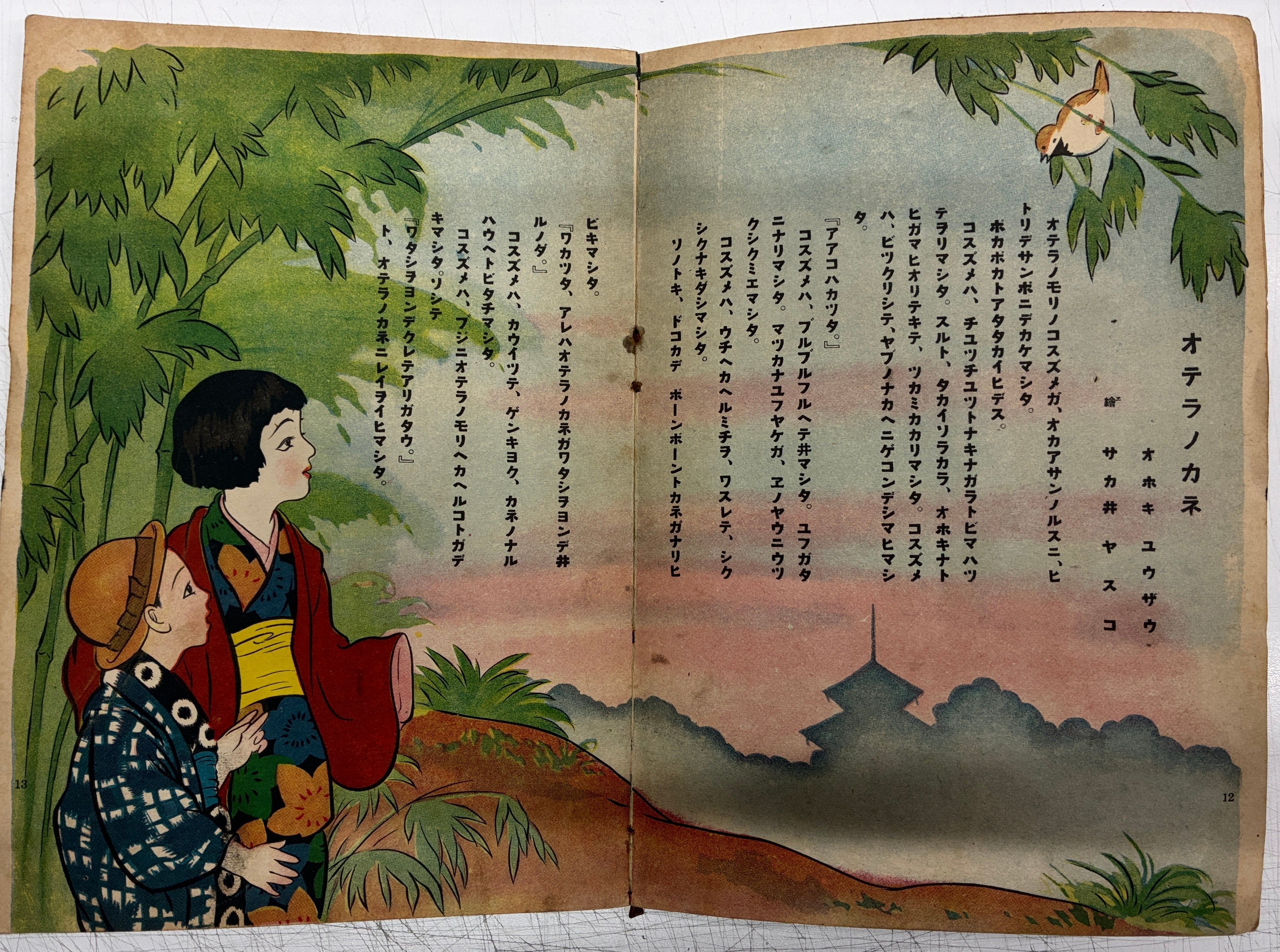 この時代は見開き完結の言葉(詩)と絵の連続 絵の担当は、本田庄太郎、下村泰一、清水三重三、恩地孝四郎、伊藤タカシ、サカ井ヤスコ、井元水明、神谷萬吉、細木原青起、田中良、樋口富麻呂など 聞いたことのある作家も 1928年 表紙絵 一木弴(いちき とん) 朝日新聞