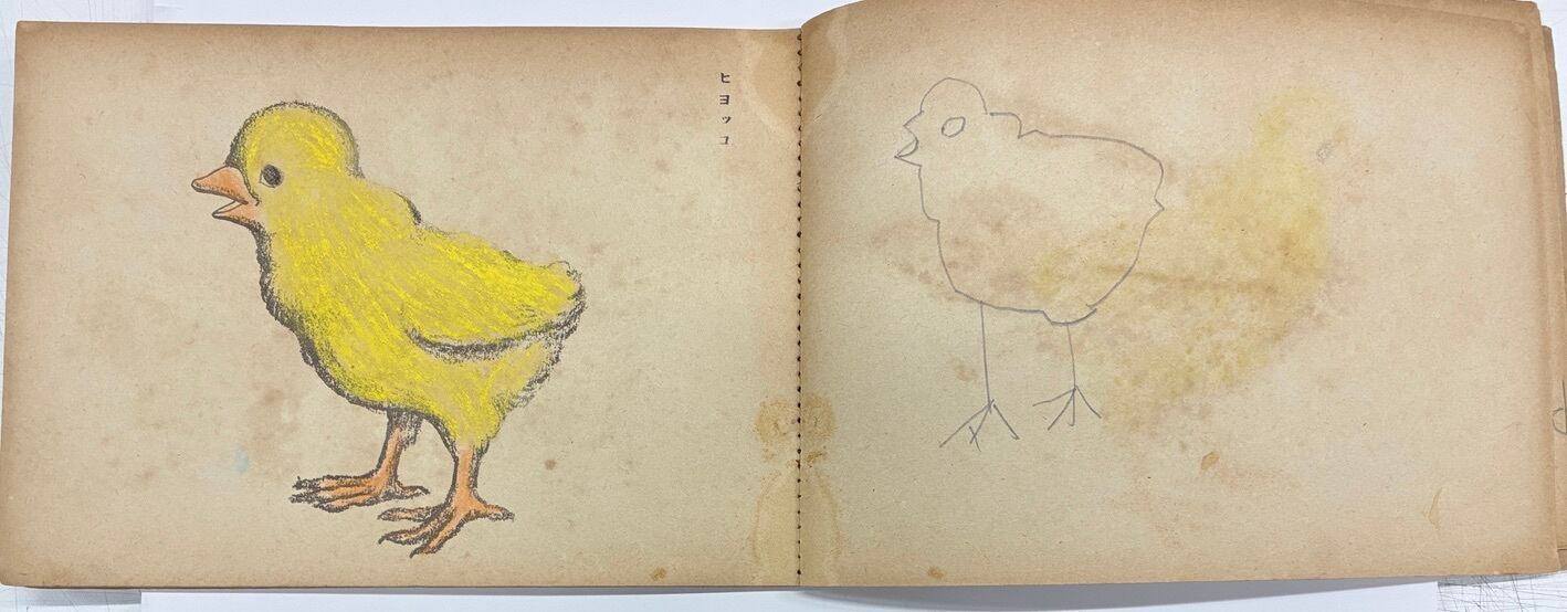 武井武雄の塗り絵はNo. 6とあるように、何冊かあるようです でも見つけられるそのほとんどは、当時の子どもがちゃんと塗り絵を楽しんでいます この塗り絵もです 1941年(昭16) フレーベル館