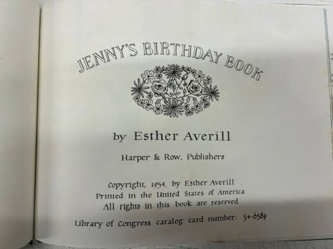 ESTHER AVERILL JENNY'S BIRTHDAY BOOK 1954年 Harper & Row, Publishers