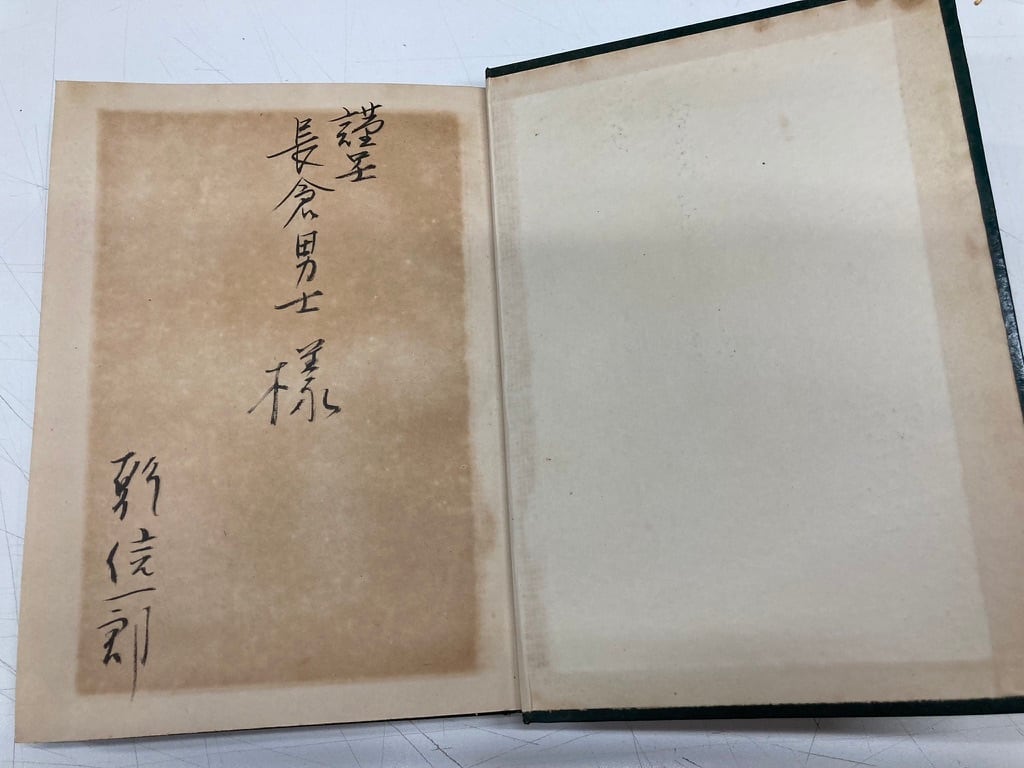 挿画・カット 茂田井武とあって、装丁家の名前がありませんが、茂田井武だと確信しています。函の2色の色の選び方、その箱から緑、赤、灰の艶のある紙、それに色のカットとタイトルの書体と箔押し。そして扉絵の2色を使ってのタイトルとカットと版元名の配置。3冊とも違います。そして短編はじまりの扉のタイトルとカットの位置関係、これもいちいち違う。本全体が茂田井の思い通りの作り方をしていて、おみごと!と柏手を打ちたい。グラフィックデザイナーとしての茂田井が見事に具現化された感じがします。短編ごとに扉カットがあり各20で計60ぐらいでしょうか。状態は写真で確認してください。1953年 初版 函 3冊とも乾信一郎の謹呈サインあり。春秋社刊