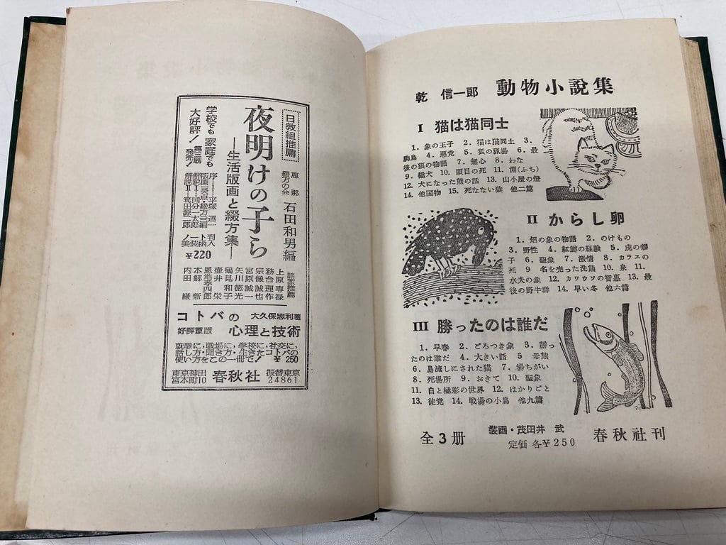 茂田井武 動物小説集 全3巻 乾信一郎 1953年 初版 春秋社刊