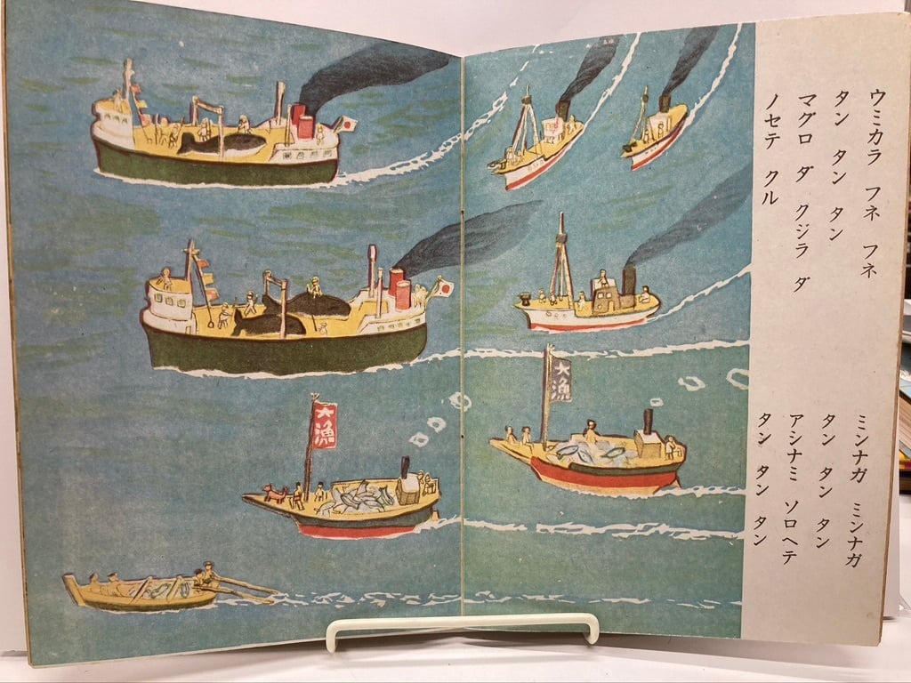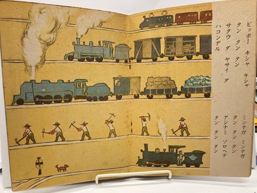 裏表紙に ウタ 與田準一 エ 茂田井武 とあります。当時のものとしては、しっかりしていて状態もいいです。戦時中なので戦威高揚のための絵本ですが、茂田井のギリギリの抵抗を感じます。 昭和17年初版の19年3版 二葉書房