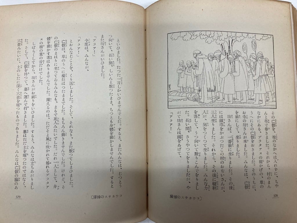 トルストイの童話集、昭和2年にこんなかっこいい作りで出ていました。1927年つまりこの年に、初山滋、武井武雄、岡本帰一、深沢省三、村山知義、清水良雄らとともに「日本童画家協会」結成。だからっていうか、川上四郎の力作ですね。函ナシ 経年のヨレ 表紙に祭魚洞文庫のシール 昭和2年 初版 模範家庭文庫 天金 冨山房刊