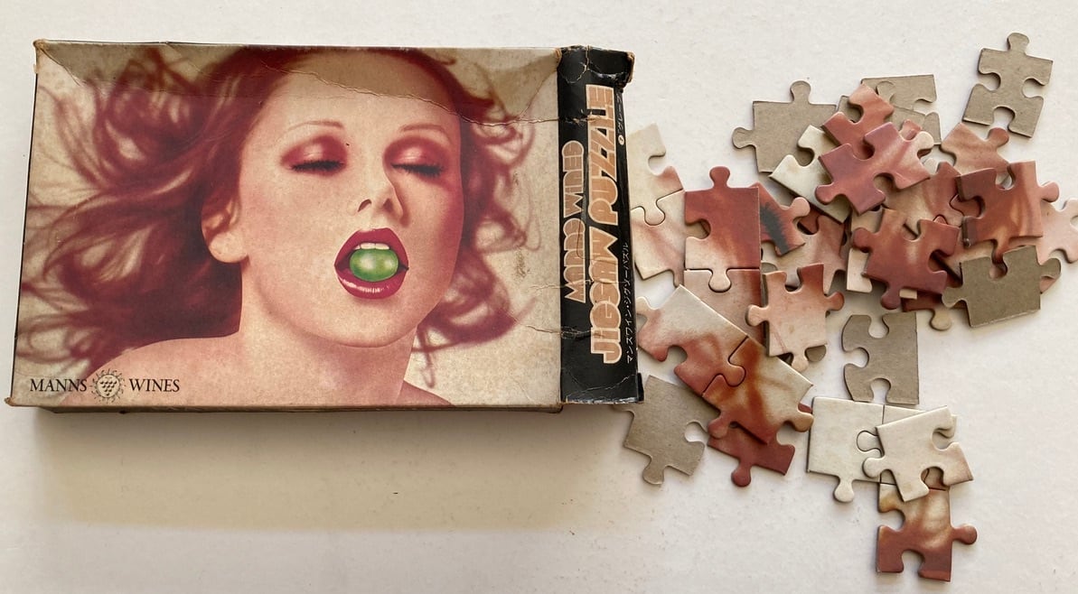 マンズワインの景品だと思います。2種でジグソーパズルは、完成させていませんので、完品だと思いますが、保証はできません。函の状態は、画像で確認してください。大分ヨレというか、つぶれというか、状態はよくない。昭和40年〜50年代?