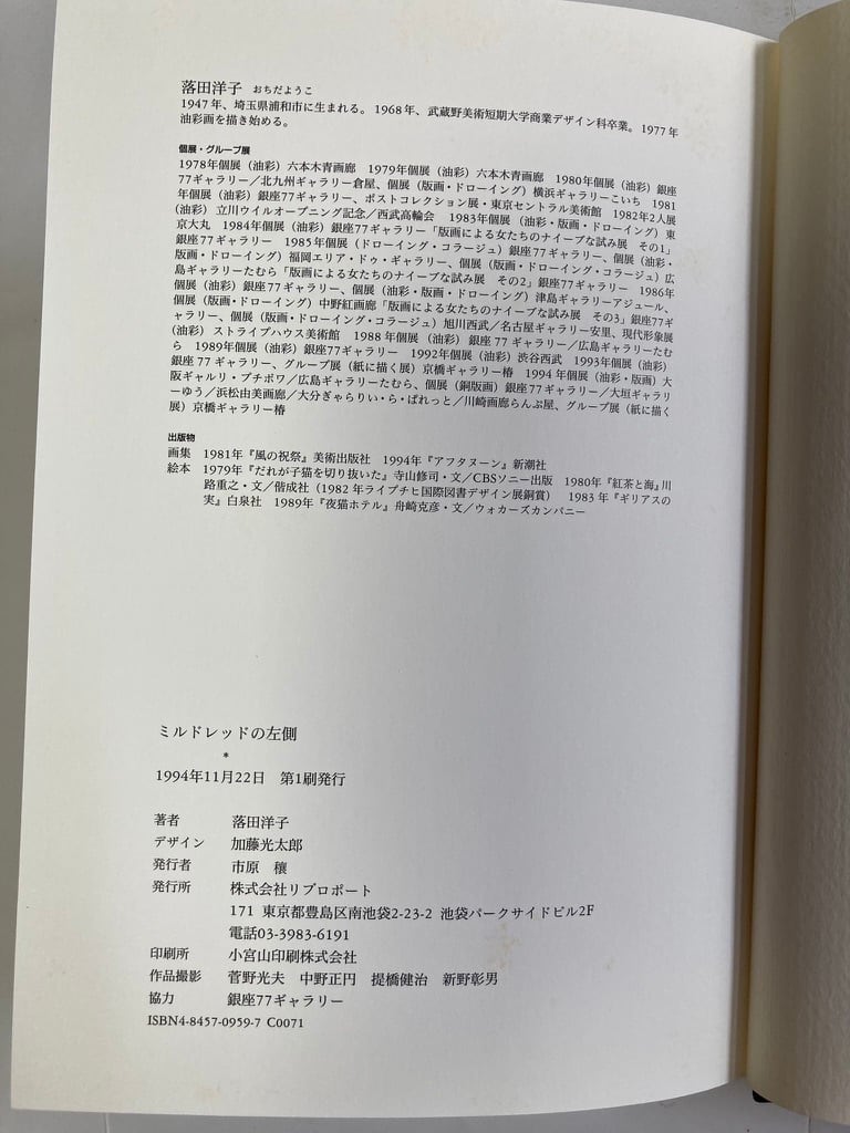 落田洋子 ミルドレッドの左側 1994年 初版 リブロポート刊