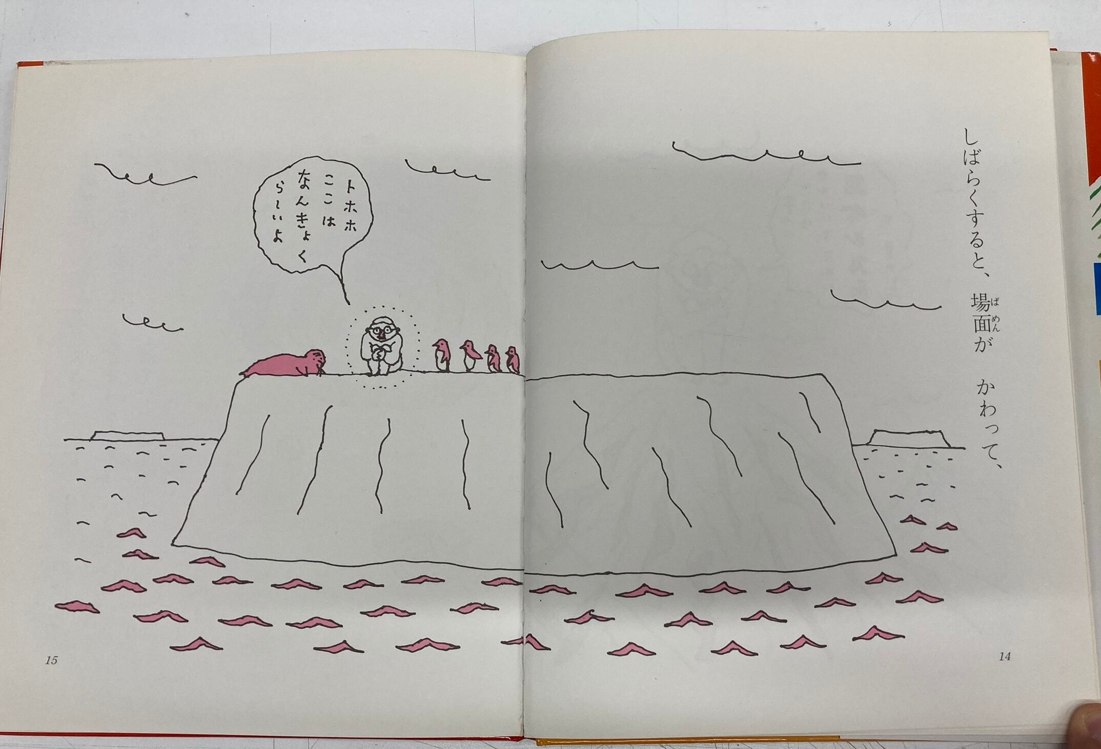舟崎克彦のなんとまあ都合のよくリズミ感のある展開のお話に呼応して長新太の絵のおもしろいこと! 全ページ2色刷り。このシリーズは、スミとピンクです。1986年 初版 旺文社刊