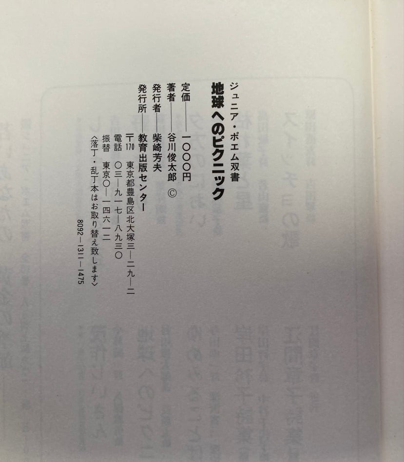 長新太 谷川俊太郎 地球へのピクニック カバー 昭和55年 教育出版センター刊