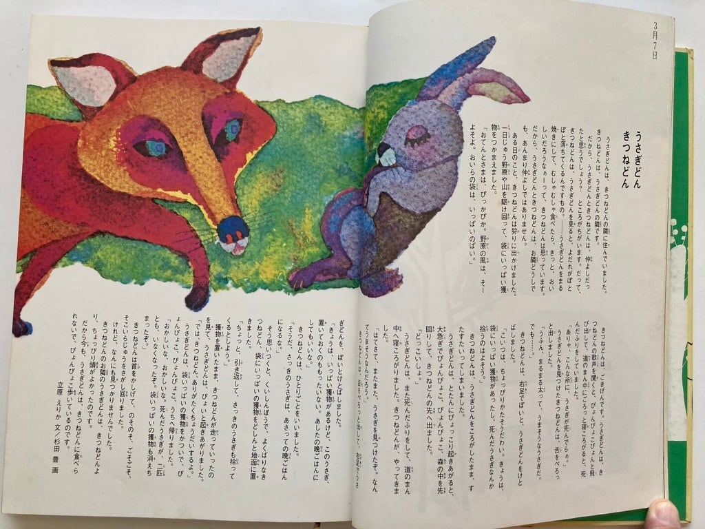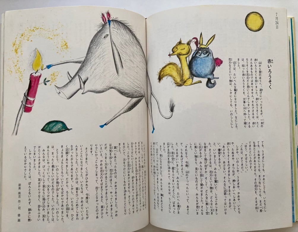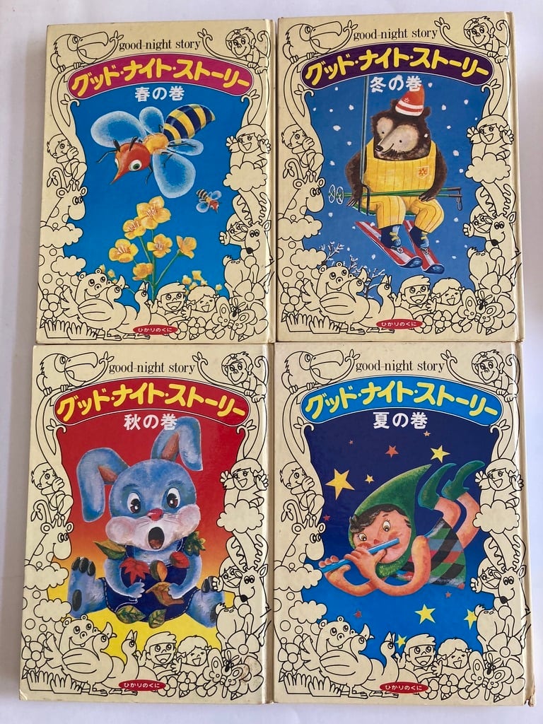 この、「グッド・ナイト・ストーリー」は、ひかりのくにの名物企画だったのでしょうね。これ以降に同じような企画で第二弾もあるようです。とにかく見開きに主に児童文学作家の短編を配しそれに豪華絵本作家の絵をつける。その絵描きが、長新太 中谷千代子 鈴木義治 柳原良平 堀内誠一 杉田豊などすごいきかくですね。春・夏・秋・冬の4冊セット 函はありません。昭和49年 初版 ひかりのくに刊