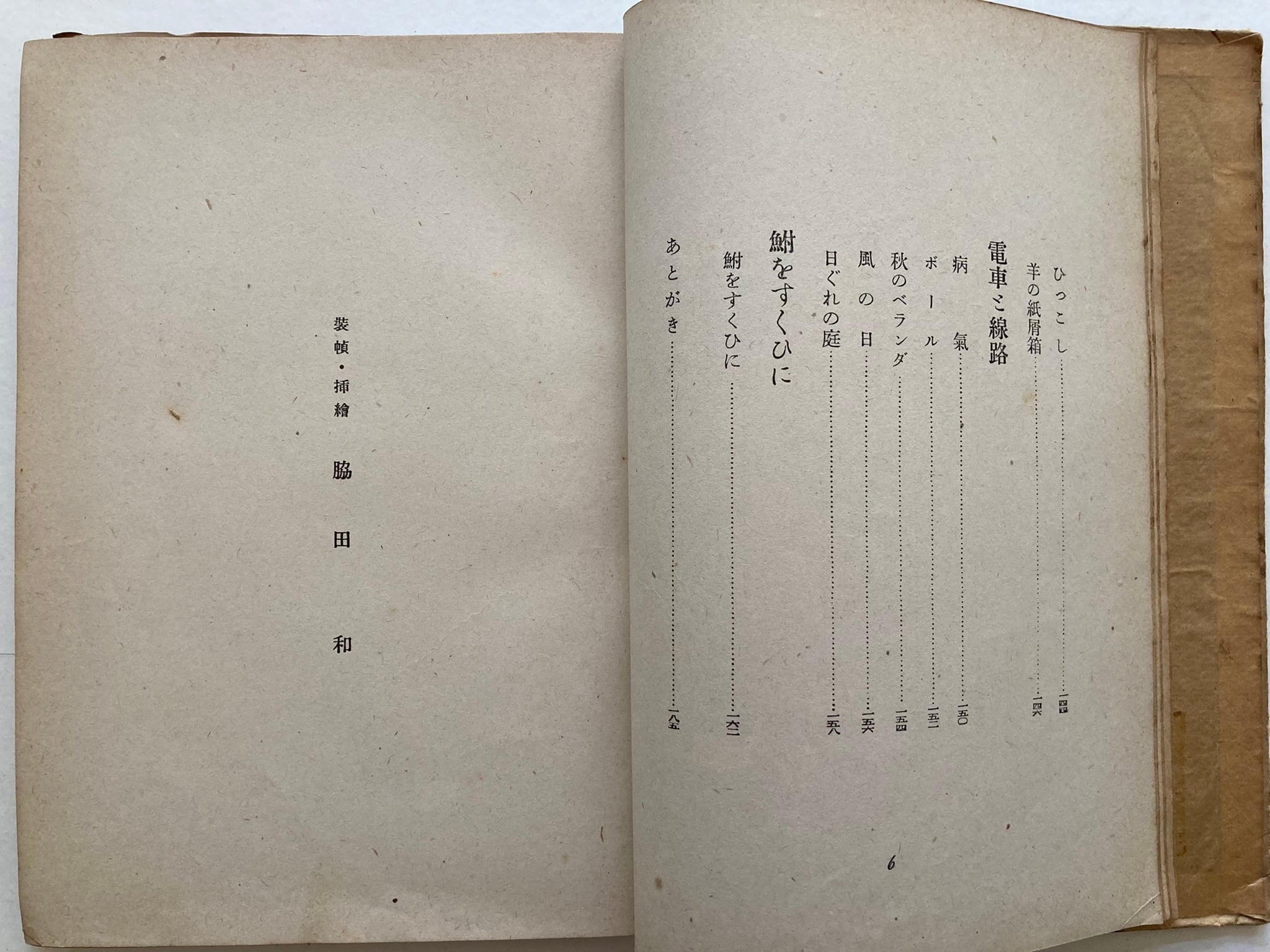昭和18年とあるから、戦争を鼓舞したような内容かとおもったが、ぜんぜん違っていました。特に脇田和の挿絵がすばらしい。世田谷美術館での荒井良二のチョイスの「荒井良二のアールぶるっと!」の脇田和の絵よかったー! カバーなし 昭和18年 紀元社刊