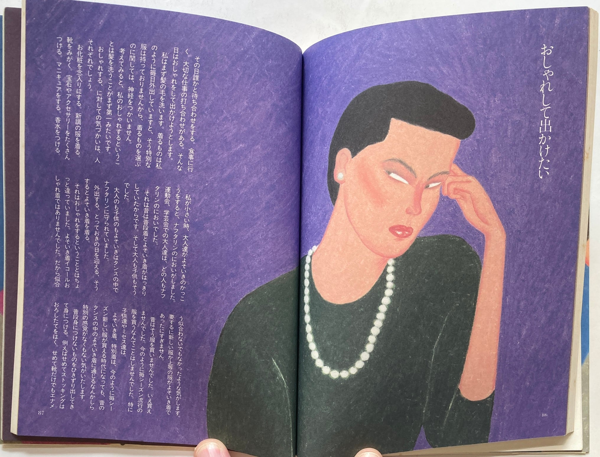 この時代は、おもしろいです。大橋歩の絵は、極端に顔が小さくて、肩がいかつくて、というか女の人の体格がいい。当時はおしゃれだったのでようね。でも大橋歩の絵でみると、ちゃんとおしゃれ!だから、すごいということですね。函は経年のヨレ感あります。昭和61年初版の63年7刷 文化出版局