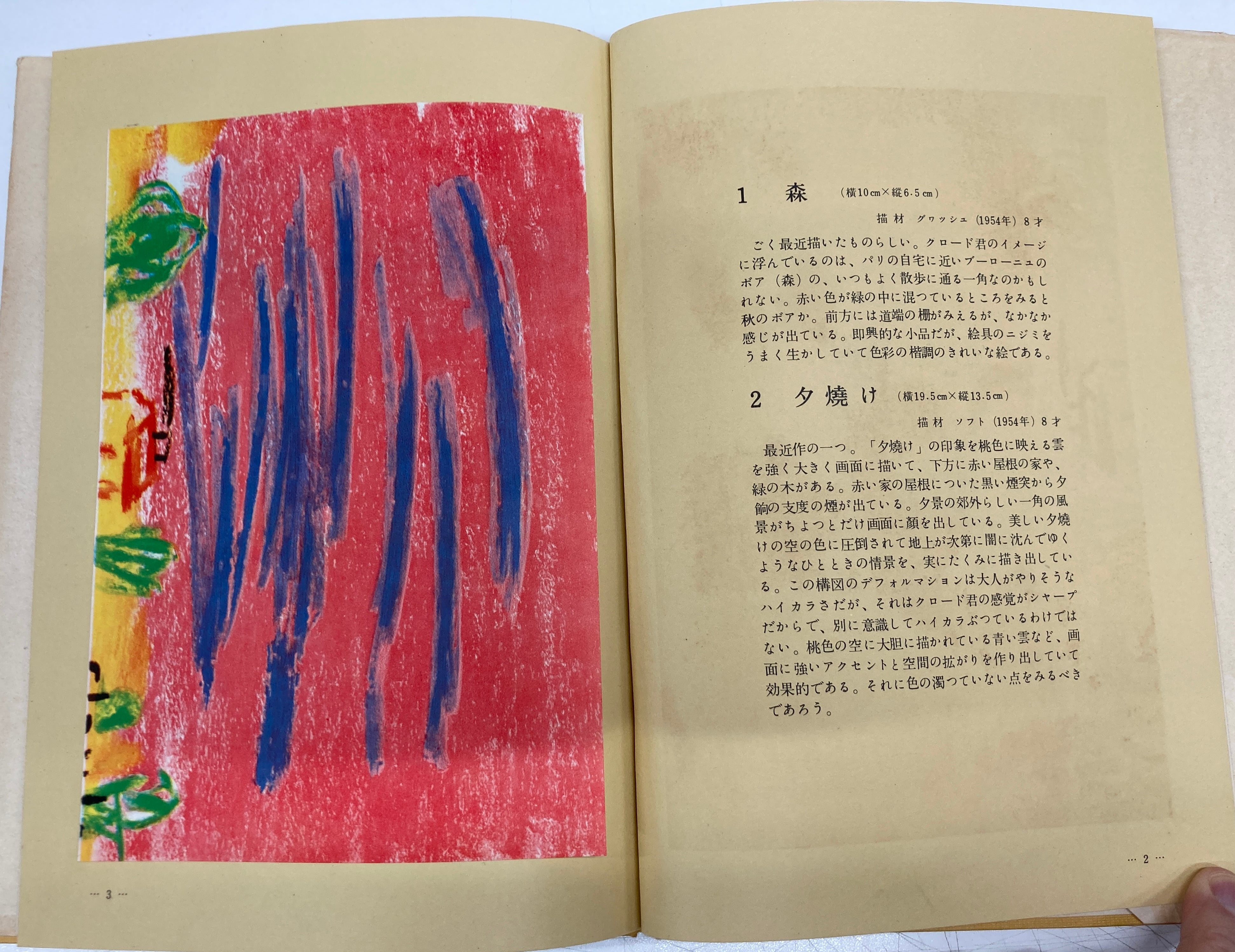 クロード岡本は、当時、注目をあびた、天才少年絵描(この画集には6歳から8歳の絵が掲載されている)。福音館書店の「こどものとも」にも一冊ありますね。王様芸術部という版元はなんでしょうね。岡本太郎は「クロード少年だけがチャンピオンではない。日本の子供達全てが自信を持って描くことが大切だ」と。絵の部分は、印刷したものを貼ってある豪華な作り。カバー 初版 1929年 王様芸術部