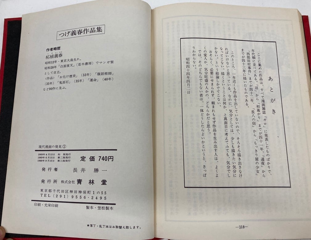つげ義春作品集 現代漫画の発見① 1969年3刷 青林堂