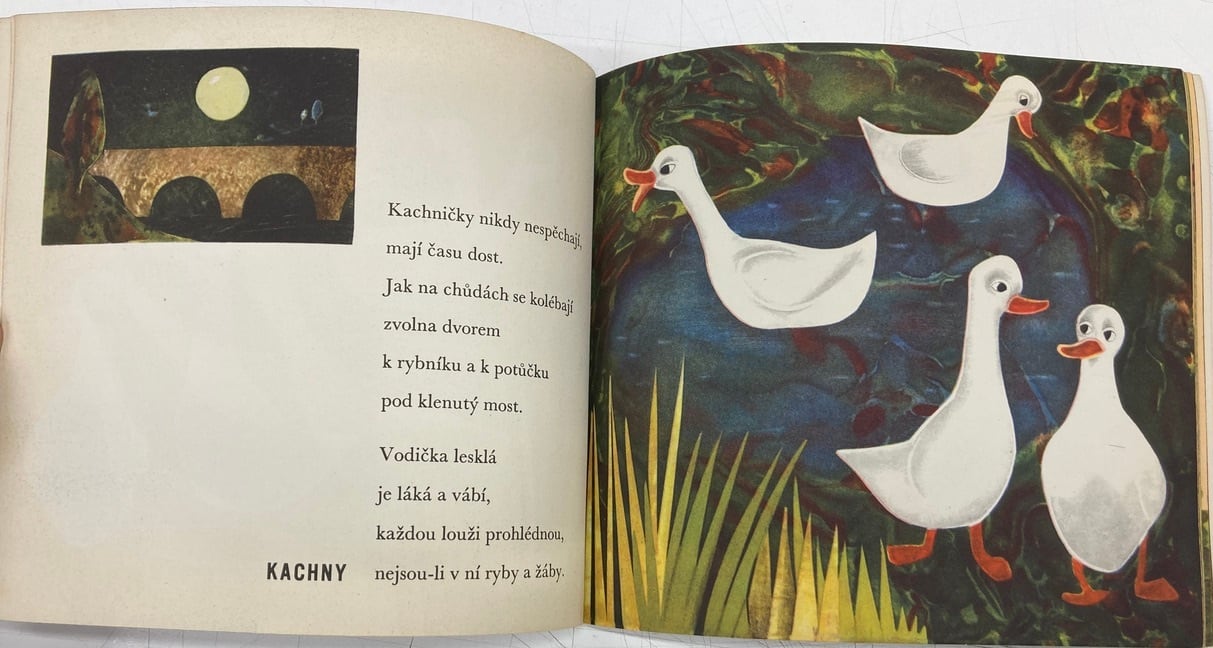 Gabriela Dubskáは、チェコのイラストレター。2003年に88歳で亡くなっています。不思議な絵で魅力的です。絵のバックのマチィエールはどういうふうに描いているのでしょう。動物たちがうかんでみえます。ソフトカバー 1964年