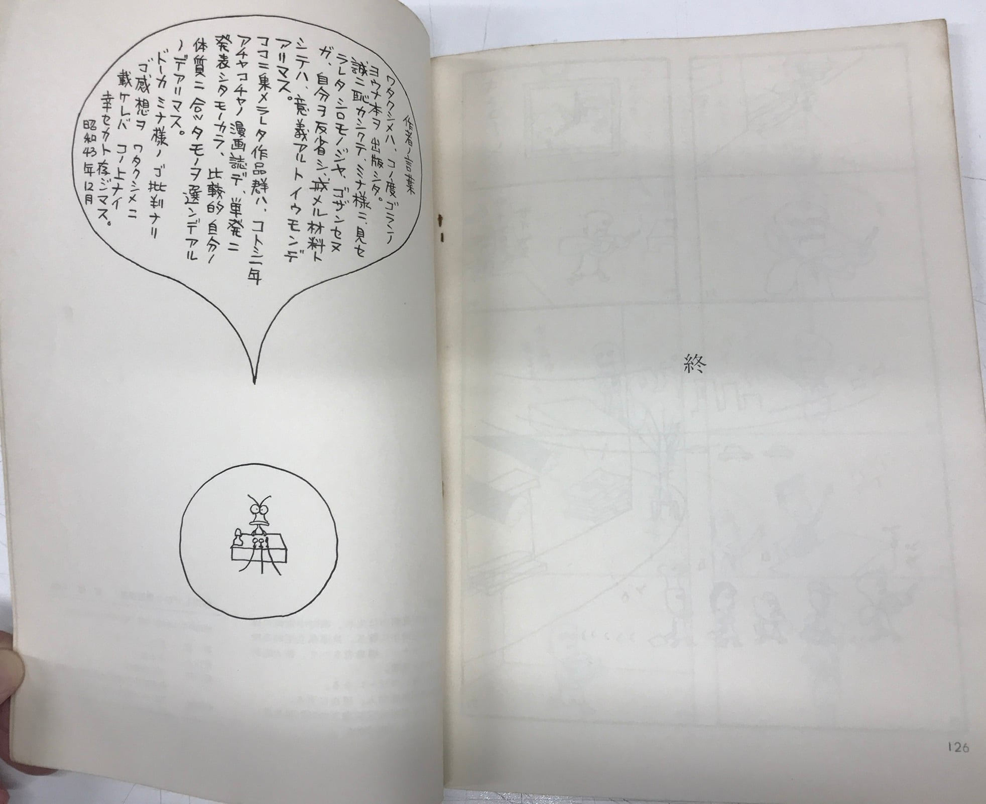 砂川しげひさは、大好きな漫画家です。谷岡ヤスジほど、破綻的ではないけど、さりげなく品を感じます。描かれる女性が、とてもチャーミングで、色っぽい。谷口広樹が店に来た時、彼も砂川しげひさが好きだと言って話がもりあがった記憶がありますね。漫画社が版元だけど、私家版だとおもいます。 昭和43年 漫画社