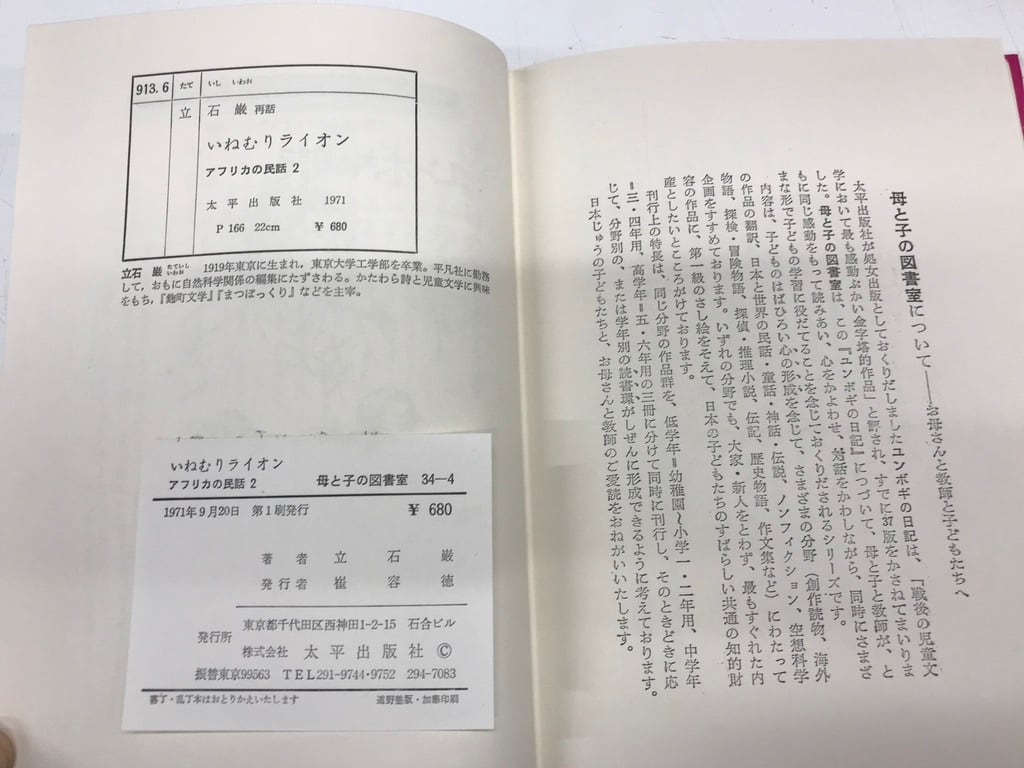 粟津潔 アフリカの民話2 いねむりライオン 立石巌 母と子の図書室シリーズ 函 1971年 初版 太平出版社