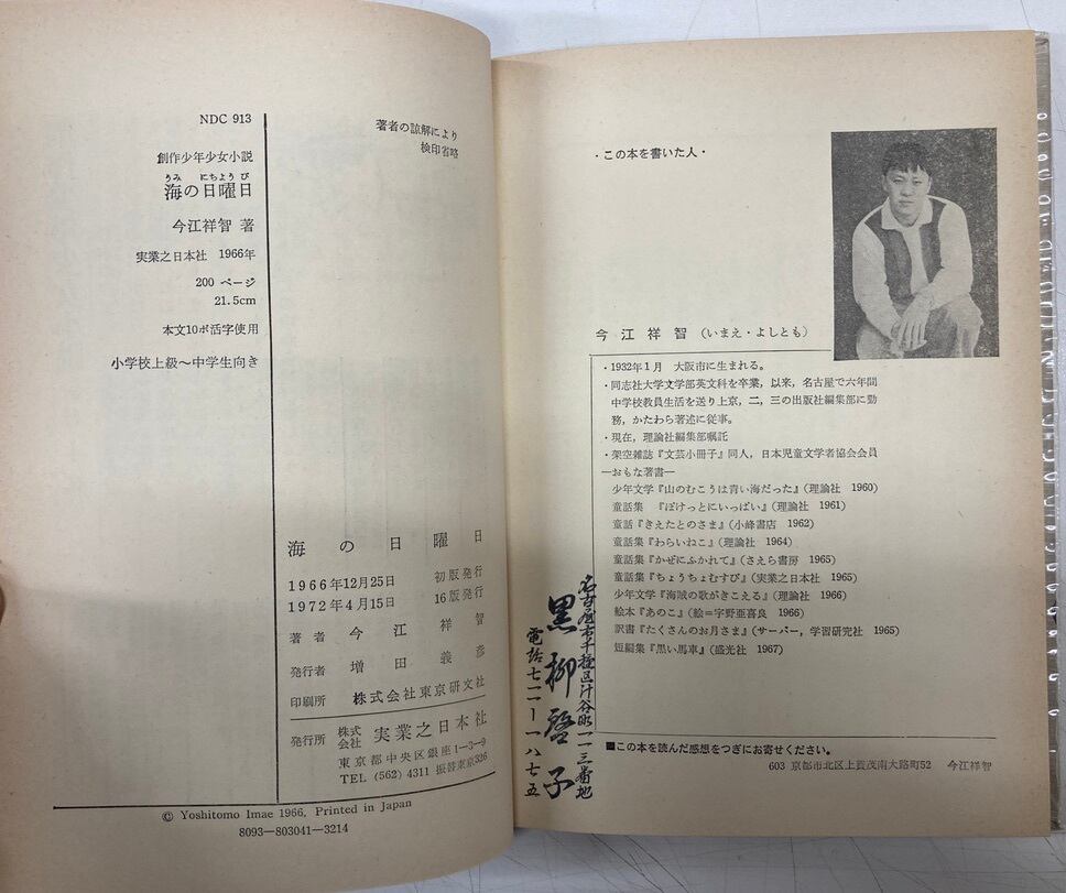 宇野亜喜良 海の日曜日 今江祥智 函 ビニールカバー 1966年初版の1972年16刷 実業之日本社
