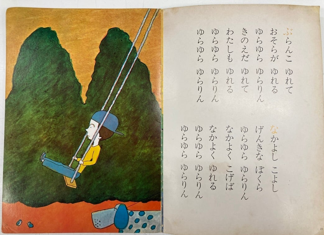 童謡に長新太が絵を描いています。ボード絵本。経年のヨレ感があります。背に破れ、テープなどあり。学研のがくしゅう絵本 発行年不明 学習研究社