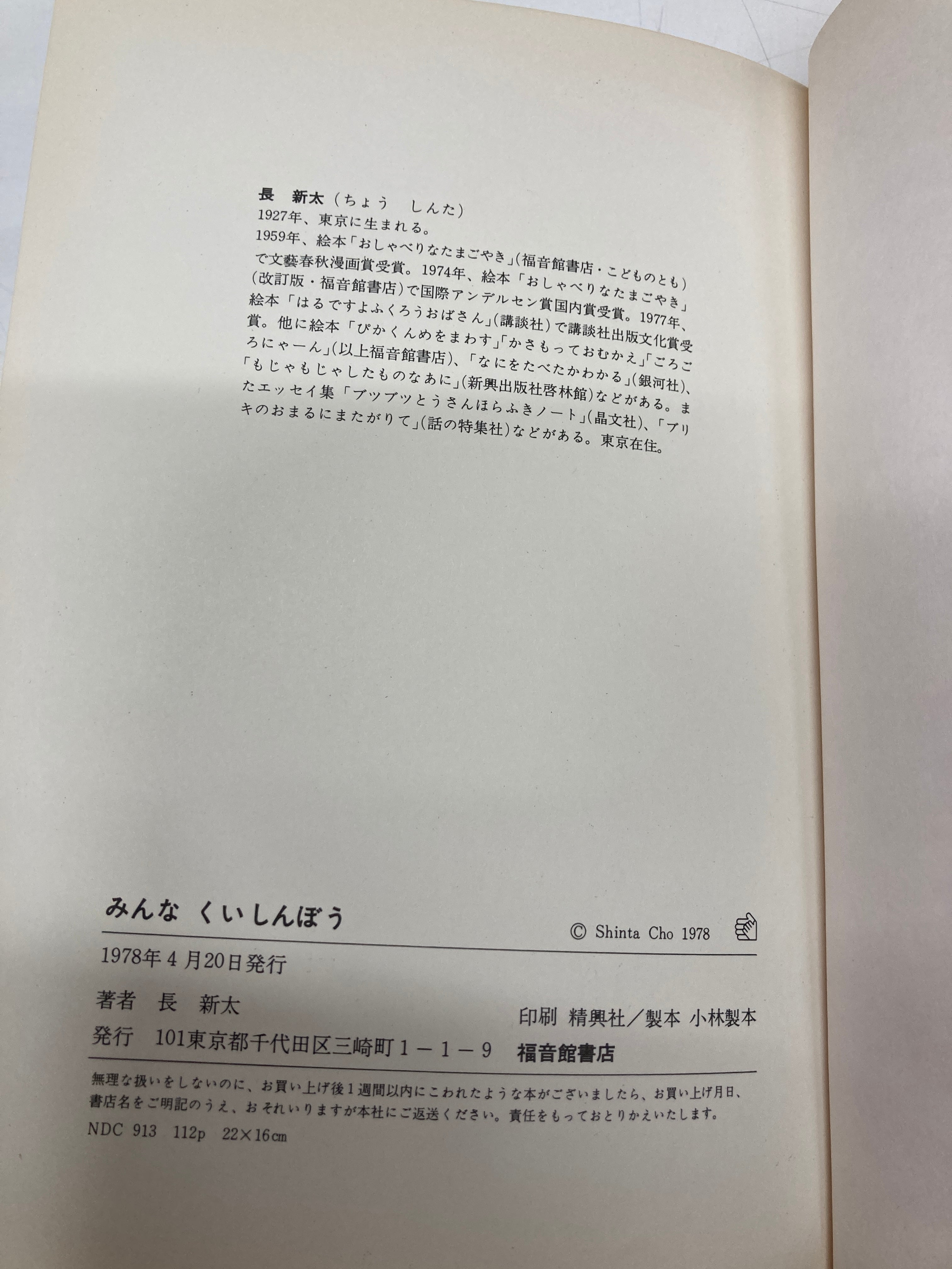 ちょうしんた(長新太) みんな くいしんぼう 1978年 初版 カバー 福音館書店