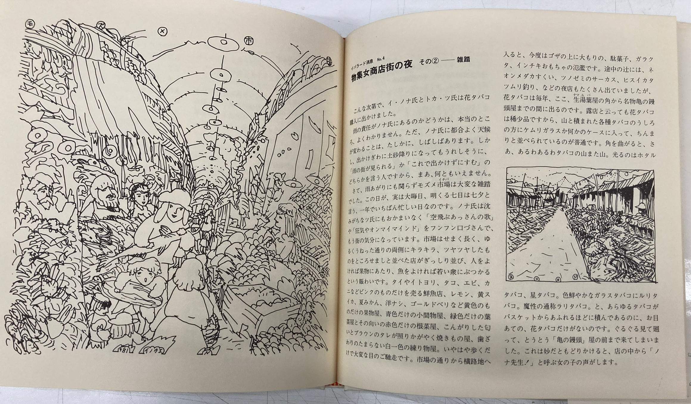 井上直久の最初の作品集ですね。この画集は、別に布装・の限定版(300部)が、あるようで、この本は普及版。井上直久は、1995年公開のスタジオジプリのアニメ映画『耳をすませば』中の挿話「バロンのくれた物語」の背景画を制作。作家として注目を集めました。展覧会の案内ハガキ付 1981年 初版 ソルマ・プレス(私家版)