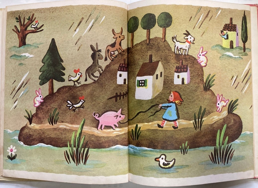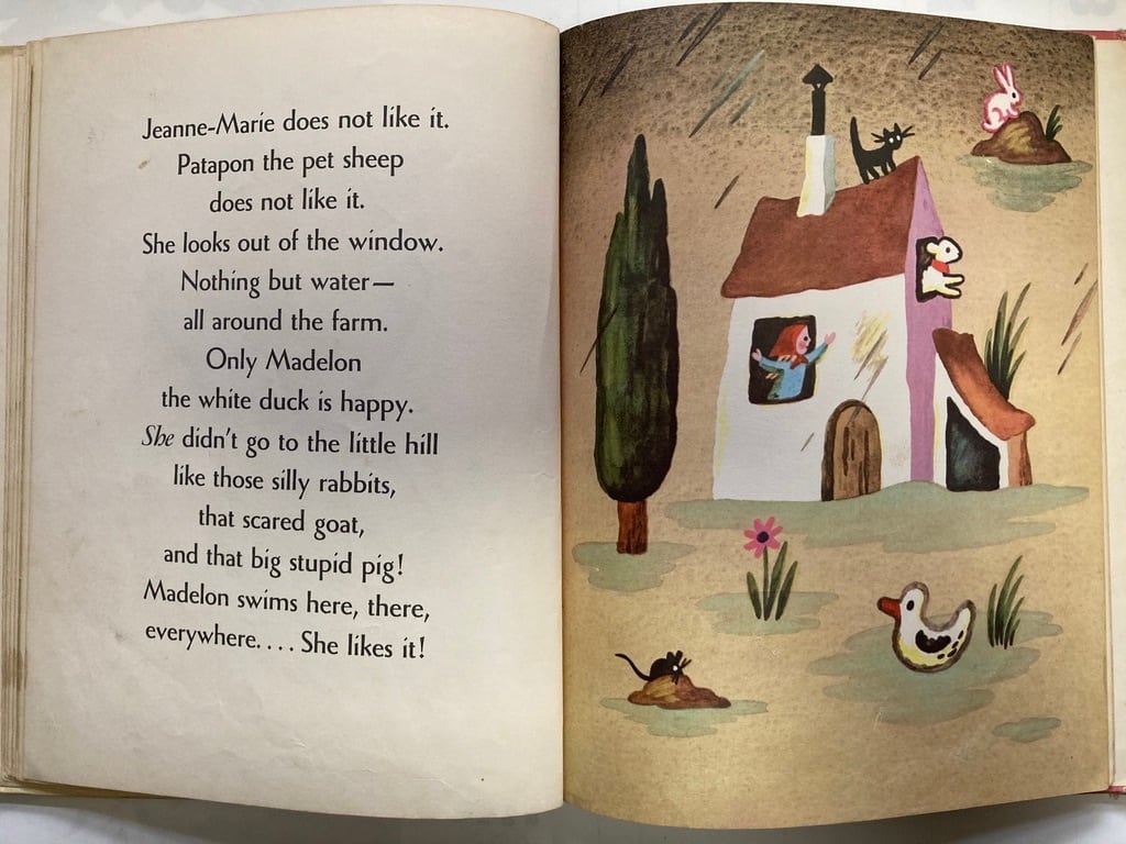 カバーありません アメリカ図書館廃棄本 邦題は「まりーちゃんとおおあめ」福音館書店 フランソワーズの絵は、どうしてこんなにかわいいのだろう、まさしく絵本の絵!という感じがします 1961年 SCRIBNERS