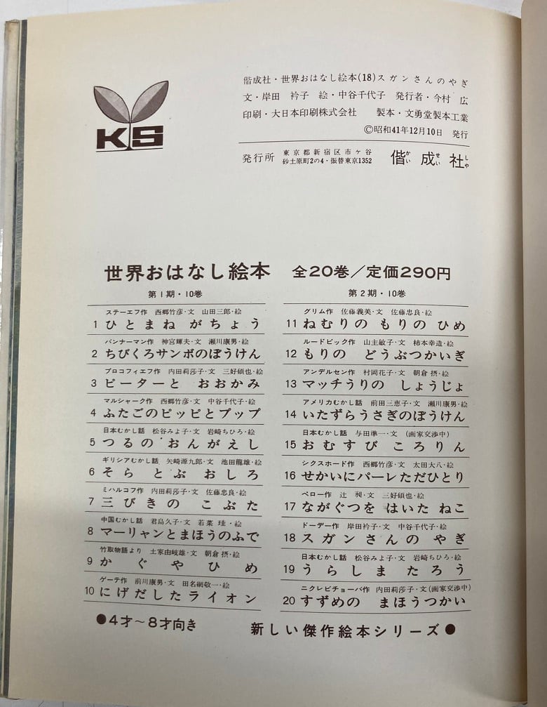 偕成社の「世界おはなし絵本」の一冊として出たようです。この絵本は、名作としてロングセラーになっています。中谷千代子の絵もすばらしい。 函 1966年 初版 偕成社