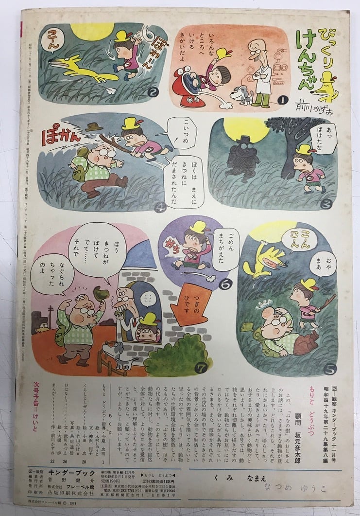 木村しゅうじは、漫画家でもあるけど動物の絵に傑出したイラストレーターでもあります。他に大橋歩が絵を担当した「くみの レストラン」武川みづえ・文6ページがあります。 キンダーブック 1974年 フレーベル館
