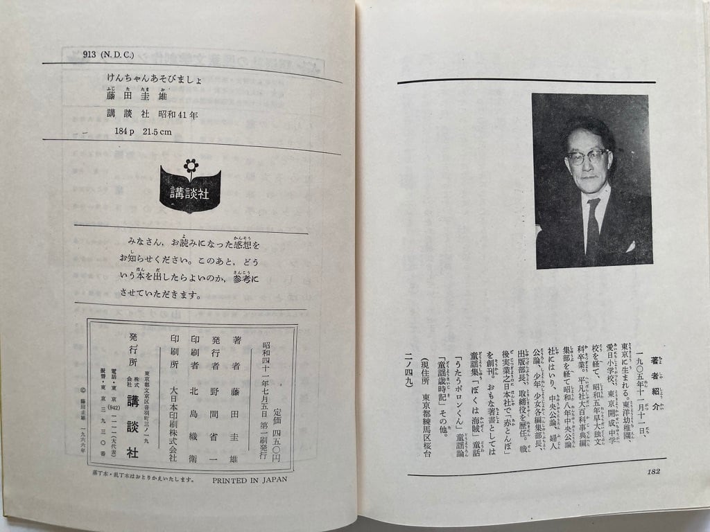 岩村和朗 けんちゃん あそびましょ 藤田圭雄 1966年 初版 講談社